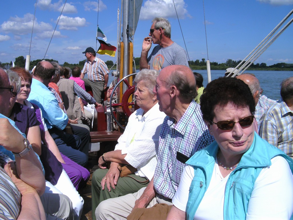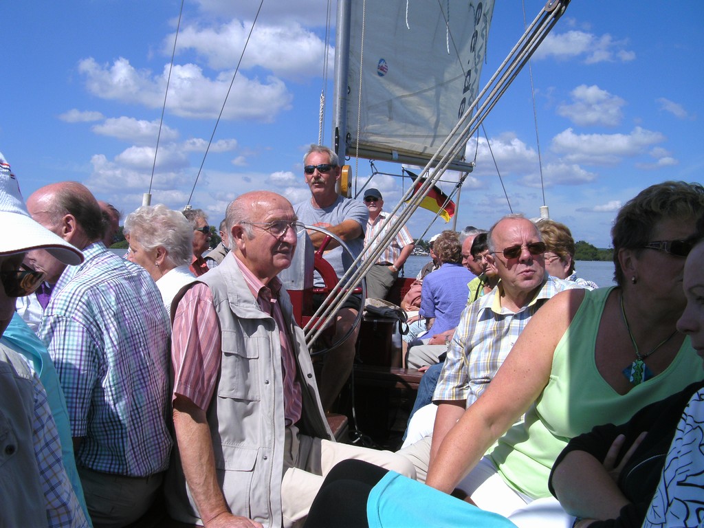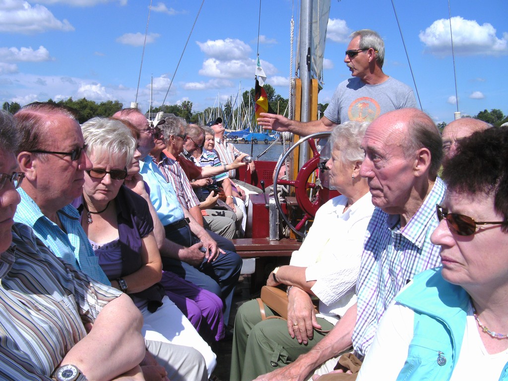 1. September 2010Die traditionelle Bustour des Heimatvereins Sögel führte die 50 Teilnehmer in diesem Jahr, unter der Leitung von Paul Dornbusch, an den Dümmer. Im Olga-Hafen von Dümmerlohausen angekommen, ging es mit dem Segelschiff „Europa“ hinaus auf den Dümmer. Zunächst mit Hilfe eines Elektromotors um Fahrt aufzunehmen, dann aber unter vollen Segeln führte die Fahrt durch die herrliche Natur des Dümmers. Viel zu schnell verging die Zeit an Bord. Nach einer gemütlichen Mittagspause im Strandhaus ging es dann mit dem Bus weiter nach Lembruch an die Ostseite des Dümmers. Dort hatten die Heimatfreunde Zeit den Ort nach eigenem Ermessen zu erkunden oder sich auf der Strandpromenade Eindrücke von Land und Leute zu verschaffen. Nach einer gemeinsamen Kaffeetafel im Hotel „Strandlust“ wurde dann die Heimreise angetreten. Alle Teilnehmer waren vom Tagesprogramm begeistert und kamen wohlbehalten nach Sögel zurück.