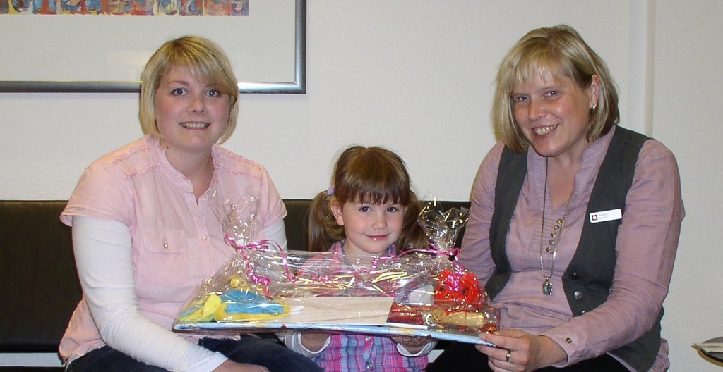 Unser Bild zeigt von links Mutter Sonja Tholen, Lisa Tholen und die Kundenbetreuerin der Sparkasse, Andrea Rekers, bei der Gewinnübergabe. Natürlich konnte Lisa sich auch noch über ein kleines Präsent der Sparkasse freuen.