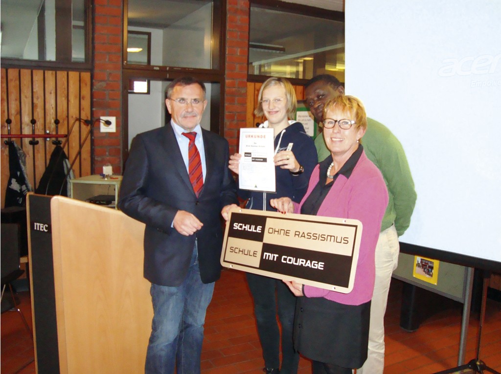 In seiner Rede zur Verleihung der Auszeichnung als „Schule ohne Rassismus“ durch Udo Tiemann von der Niedersächsischen Landesschulbehörde in Meppen, erwähnte Tiemann, dass Schulen ohne Rassismus sich bewusst gegen jede Form von Diskriminierung, Mobbing und Gewalt wenden und sich für Toleranz einsetzen. Mindestens 70% aller in der Schule Beteiligten verpflichten sich durch Unterschrift, sich dafür einzusetzen und dadurch Verantwortung für das Klima an der Schule zu übernehmen.
