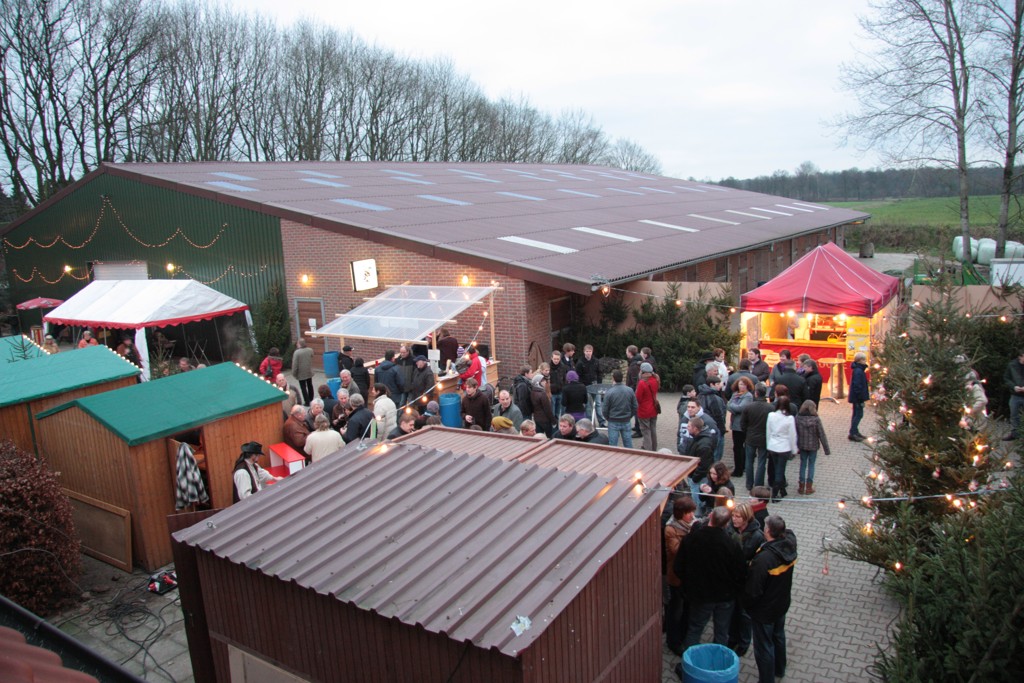Gemeinsam mit engagierten Freunden, Nachbarn und Ausstellern veranstalten Frieda und Daan van Wingerden am 15.12.2013 ab 11.00 Uhr den traditionellen Weihnachtsmarkt. Mit buntem Budenzauber und Lichterglanz in einem rustikalen Ambiente, verwandelt sich das Anwesen in eine traumhafte Kulisse. Kaffee, selbstgebackener Kuchen, süße Waffeln und geschmackvoller Glühwein erfreuen den Gaumen und die adventliche Atmosphäre lädt zum Verweilen ein. Liebevoll dekorieren und präsentieren verschiedene Aussteller stilvolle Geschenkideen, handgefertigte Waren und noch Vieles mehr.