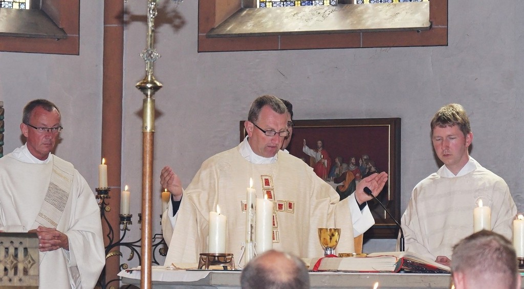 15. Juli 2014Sögel – Als Neupriester zog am Pfingstsonntag Hermann Prinz feierlich in „seine Heimatpfarrkirche“ St. Jakobus zur Primizmesse sein. Der Osnabrücker Bischof Franz-Josef Bode hatte Prinz am Vortag im Dom zum Priester geweiht.