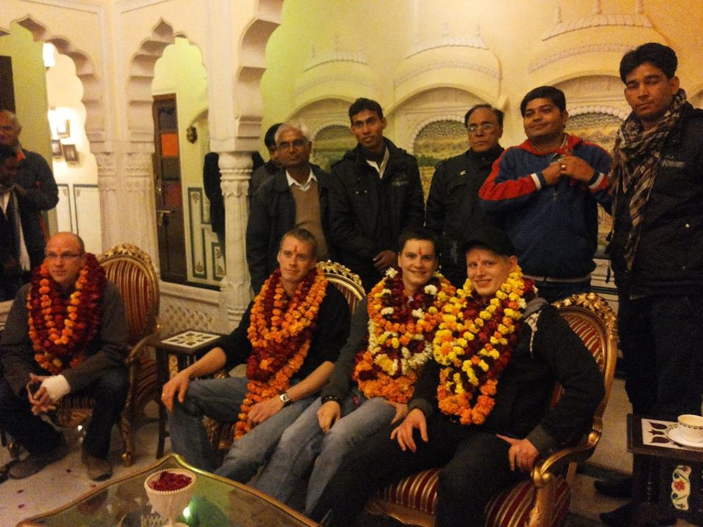 Zuerst besuchte man den Garib, das Kushth Ashram, dem sogenannten Stavern-Ashram. In einem Ashram leben die an Lepra oder Tuberkolose erkrankten Menschen gemeinsam, da sie von der Gesellschaft in Indien aufgrund der Erkrankung ausgestoßen wurden. Dieser Stavern-Ashram wird von den Spendengeldern der Gemeinde Stavern unterstützt. Es entstanden hier aus einfachen Holzhütten massive Gebäude und der Zugang zu Wasser konnte ermöglicht werden. Des Weiteren werden durch die Spenden die komplette ärztliche Betreuung und Behandlung, sowie die Verpflegung der Erkrankten und deren Kinder sichergestellt. Auch in die schulische Ausbildung kann investiert werden. So werden die Kleinsten direkt vor Ort von einer Lehrerin unterrichtet und es können für die älteren Kinder Schulgelder gezahlt werden. Der Empfang der bereitet wurde, kann gar nicht in Worte gefasst werden. Die Bewohner des Stavern-Ashram sind der gesamten Gemeinde Stavern sehr dankbar. Sie freuten sich außerordentlich über den erstmaligen Besuch ihrer wohltätigen Unterstützer aus Deutschland. Durch diese Spenden kann den Menschen erst die Heilung und anschließend ein menschenwürdiges Leben ermöglicht werden. Die Königssinger durften im Ashram abschließend das neue „Königssinger Stavern Office“ einweihen.