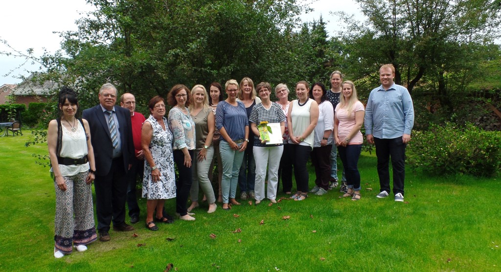 3. September 2016Börger – Ihr 25-jähriges Dienstjubiläum durfte die Leiterin der Kindertagesstätte Speelhus in Börger, Margret Pohlgeers, mit Ablauf des Monats Juli feiern. Damit ist sie seit der Gründung des kommunalen Kindergartens in Börger vor 25 Jahren dort tätig und hat die Entwicklung der modernen, pädagogischen Einrichtung maßgeblich mit beeinflusst. Die Mitarbeiterinnen der Kindertagesstätte und die Vertreter der Gemeinde Börger bedankten sich bei Frau Pohlgeers für ihre zuverlässige und engagierte Arbeit zum Wohle der Kinder und wünschten ihr für die nächsten Jahre weiterhin nur das Beste.
