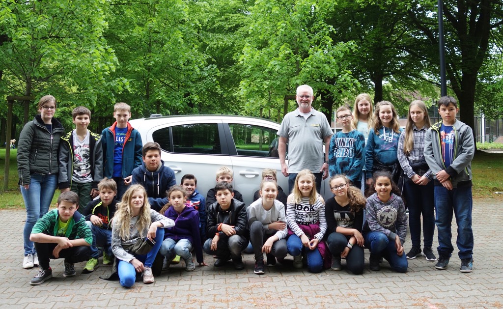 1. Juni 2017Sögel – Das bundesweite Verkehrserziehungsprogramm des ADAC unter dem Motto „Achtung Auto“ fand auch in diesem Jahr auf Initiative von Markus Schute als Mobilitätsbeauftragter der Oberschule Sögel für alle Fünftklässler statt. Moderator Dieter Reinhardt vom ADAC sagte: „Zehn- bis zwölfjährige Kinder neigen im Straßenverkehr besonders zu spontanem Verhalten, da sie die Geschwindigkeiten und Bremswege von Autos nicht richtig einschätzen können. Von daher gehören sie zu den gefährdetsten Teilnehmern im Straßenverkehr.“ Bei der Verkehrsübung erklärte Herr Reinhard u.a. den Zusammenhang zwischen Geschwindigkeit, Reaktionszeit und Bremsweg. Dabei mussten die Schüler zunächst einmal lernen, ihren eigenen Bremsweg einzuschätzen und für die erforderliche Übung zehn Meter bis zu einer Ziellinie laufen und währenddessen durch Zuruf abrupt stehen bleiben. „Gar nicht so einfach“, stellten die Schüler gleich fest. Danach kam es zum Höhepunkt der Übung: Mit dem ADAC Experten hinterm Steuer durften sie als Beifahrer miterleben, wie das Auto bei einer Vollbremsung bei 30 km/h sowie bei 50km/h reagiert. An diesem Beispiel erklärte Herr Reinhard wie Reaktions- und Bremsweg den Anhalteweg von Fahrzeugen bilden. Mit großer Begeisterung wurde diese informative und spannende Aktion von den Schülern und ihren Klassenlehrern aufgenommen. Schulleiterin Maria Lau bedankte sich bei Herrn Reinhard für „die interessante und lebenswichtige Aktion, die den Kindern neben dem Erlernen von wichtigen Verhaltensregeln im Straßenverkehr auch noch sehr viel Spaß bereitet hat“.