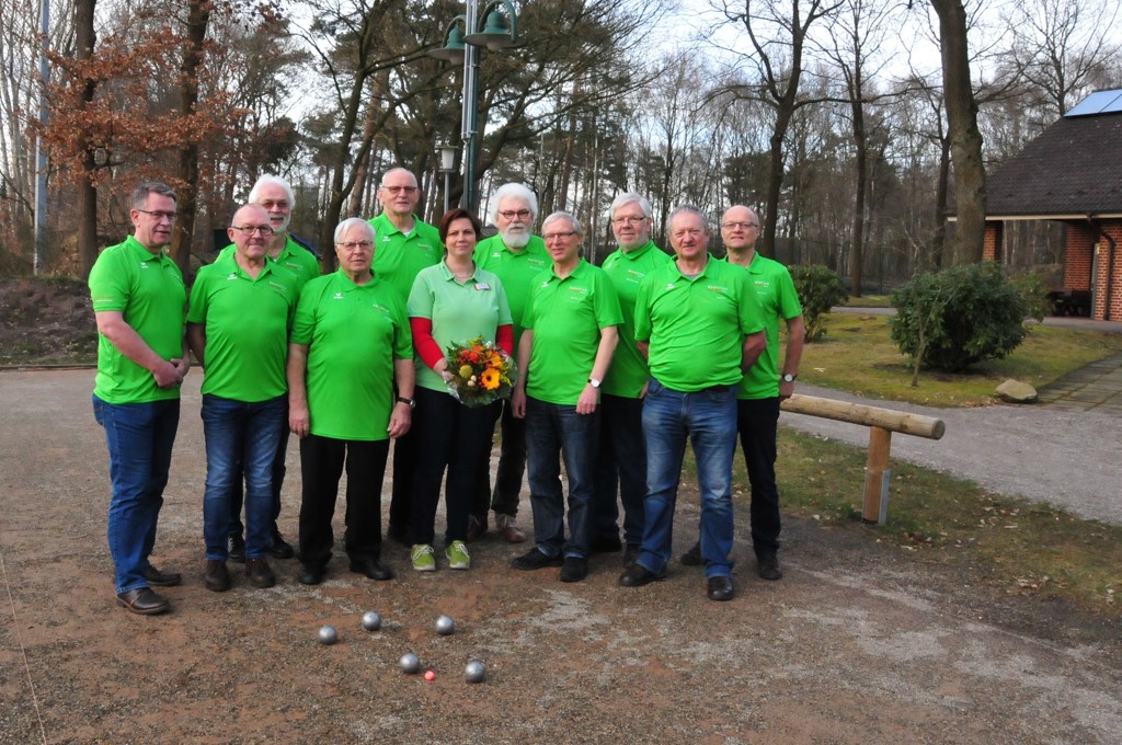Jetzt haben auch die Sögeler Boule-Spieler eine Mannschaft aufgestellt, die in diesem Jahr erstmals an den Punktspielen in der Emsland-Liga des Boulesports teilnehmen wird. Die Spieler freuen sich, dass die Sigiltra Apotheke in Sögel ihnen schicke Poloshirts für den mannschaftlichen Auftritt gesponsert hat. Sie bedankten sich bei der Übergabe der Trikots mit einem Blumenstrauß bei der Inhaberin der Apotheke, Maria Möllering. Frau Möllering zeigte sich überzeugt, dass das regelmäßige gemeinschaftliche Spiel an der frischen Luft dem Wohlbefinden der Teilnehmer sehr förderlich sei.