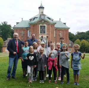 Sögel – Seit Ende August besuchen zwölf Kinder der Grundschule Süd-Hümmling die Anlage von Schloss Clemenswerth. Eine Kooperationsvereinbarung zwischen dem Emslandmuseum Schloss Clemenswerth mit der Grundschule Süd-Hümmling wurde von Museumsdirektor Oliver Fok und Schulleiter Matthias Wraga zu Beginn des Schuljahres 2018/2019 abgeschlossen. Im Rahmen der in diesem Halbjahr wöchentlich stattfindenden Schloss-AG lernen die Kinder immer dienstags spielerisch die Schlossanlage kennen. Unter der Leitung der museumspädagogischen Volontärin Frauke Wilkens werden in den Nachmittagsstunden Schlossmodelle gebastelt, Keller erkundet und dem Leben des Bauherren und Schlossbesitzers Kurfürst Clemens August nachgespürt. So entwickeln die Kinder einen eigenen Bezug zu dem Schloss, das viele schon von Veranstaltungen oder Spaziergängen mit der Familie her kennen, dessen spannende Geschichte ihnen aber weitestgehend unbekannt ist. Bis zum Ende des Schuljahres werden sie noch viele verborgene Wissensschätze auf dem Schlossgelände heben. Mit der Zusammenarbeit baut das Emslandmuseum Schloss Clemenswerth seine Kooperationen um einen weiteren Partner aus und die Grundschule Süd-Hümmling erweitert ihr Nachmittags-Angebot auf einen außerschulischen Bereich. Matthias Wraga: „Mich freut es sehr, dass sich durch die Schloss-AG unsere Kinder spielerisch und längerfristig mit der Geschichte ihrer Region und Lebensumfeldes beschäftigen.“ Oliver Fok weiter: „Die Vereinbarung ist nicht nur eine Win-Win-Situation für Museum, Schule und Schüler. Mit ihr kommen wir auch unserem Bildungsauftrag nach und schaffen eine verstärkte Identifizierung mit der Heimat!“ Seit 2009 hat das Emslandmuseum ein breites Bildungsnetzwerk aufgebaut. Acht Schulen und drei Kindergärten nehmen seit neun Jahren das vielfältige Programm der Museumspädagogik auf Schloss Clemenswerth in Form einer Kooperation regelmäßig wahr. Zu diesen zählen die Bernhardschule und die Grundschule Werlte, die Erich Kästner-Schule, die Schule am Schloss und die Albert Trautmann Schule, das Hümmling-Gymnasium und das Gymnasium Werlte sowie das Katholische Familienzentrum St. Jakobus, der Kindergarten Arche Noah und der St. Lukas Heim – Sprachheilkindergarten.