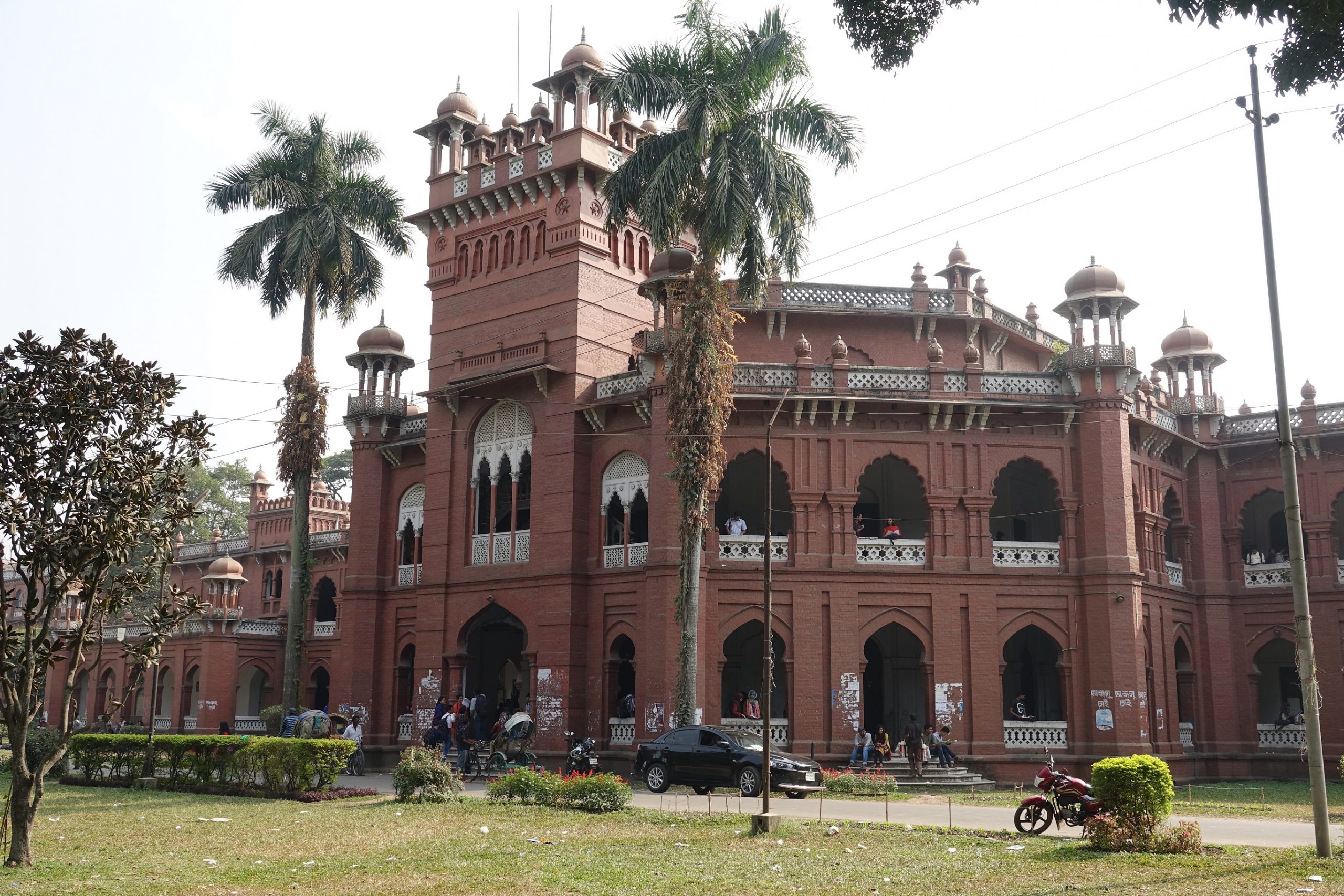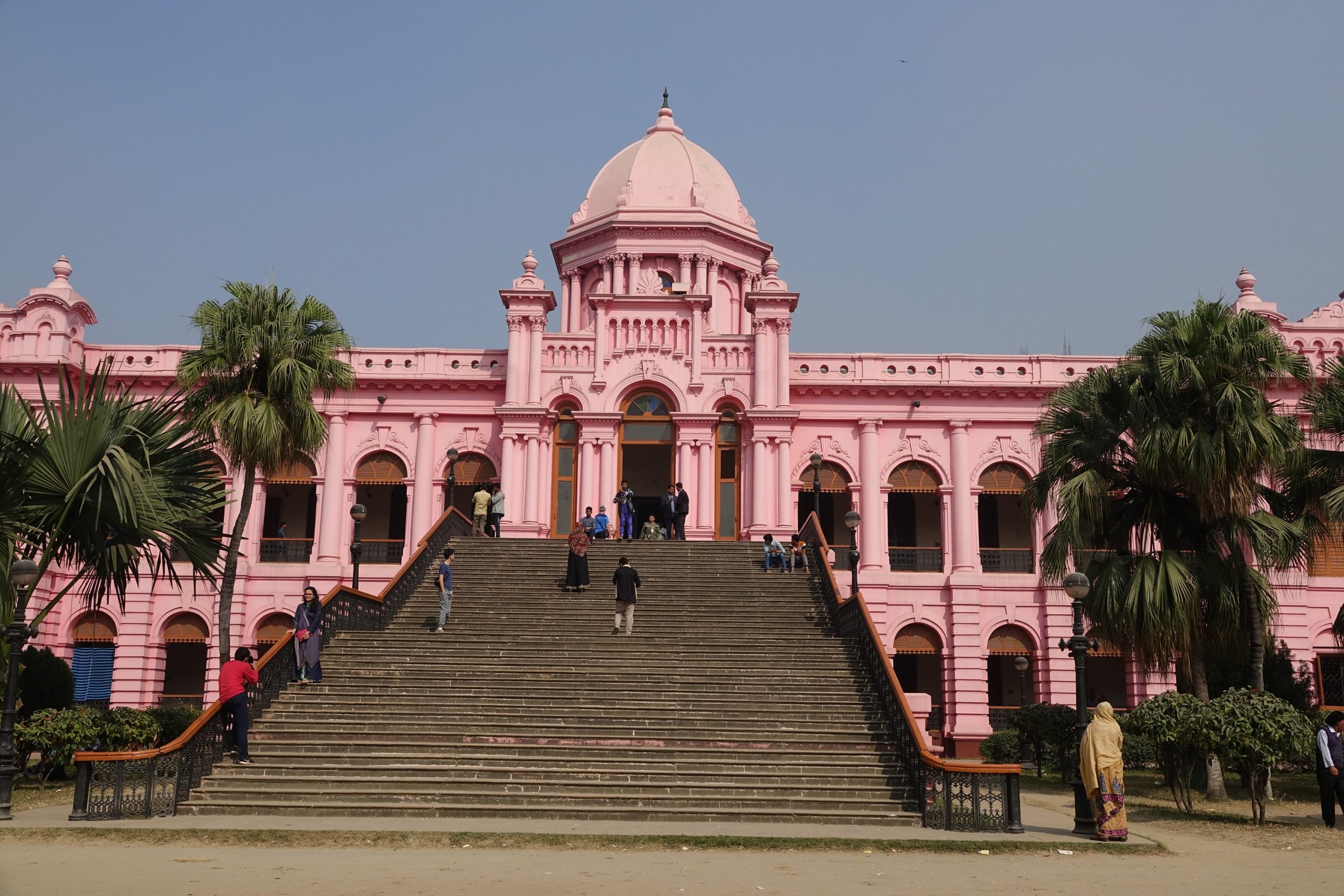 Läßt man sich durch die Strassen treiben, erlebt man die Stadt mit allen Sinnen. Hupen, ohrenbetäubendes Rikschaklingeln, Warenausrufer, Lastenträger, Garküchen, Verkaufsstände, Geschäfte mit bekannten und exotischen Angeboten, Menschgedränge. Augen, Ohren sowie Nase pendeln knapp unter der Überforderung. Die Sinne erholen sich in der Ruhe einer aus dem 18. Jahrhundert stammenden armenischen Kirche. Ruhe findet man auch im Park des imposanten modernen Parlamentsgebäude. Dann stürzt man sich erneut in das Getümmel, bis man den Pink Palace erreicht. Der rosa Palast in weitem Park geht auf das 17. Jahrhundert zurück. Er wurde mit jedem neuen Besitzer umgebaut und imponiert jetzt mit auwändigem indisch-victorianisch-historisierendem Stil. Er birgt ein umfangreiches Landesmuseum. Ein weiterer pompöser Bau ist die Curzon Hall im indisch-sarazenischem Stil aus dem Beginn der 20. Jahrhundert. Die Curzon Hall stellt heute das Hauptgebäude der Universität von Dhaka dar.