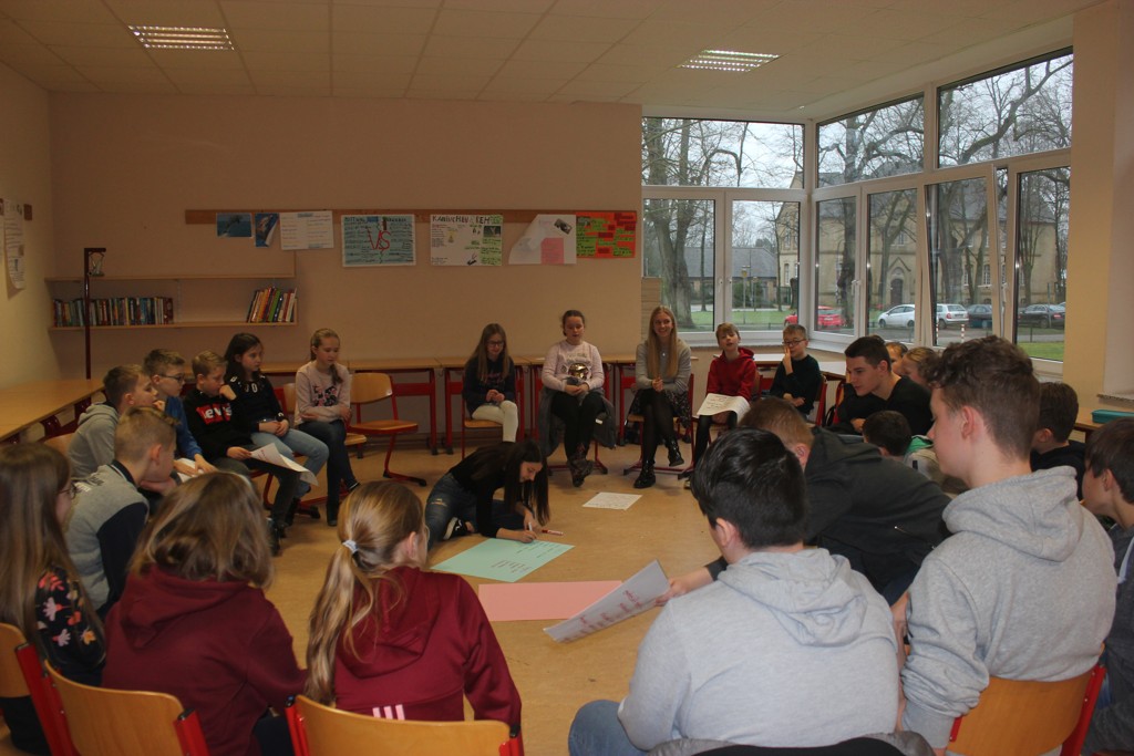15. März 2020Am 14. Februar besuchten ausgebildete Medienscouts im Rahmen des Präventionskonzeptes die Klassen 5a und 5c und diskutierten mit den Kindern in Kleingruppen die Vor- und Nachteile moderner Mediennutzung. Als Ergebnis entstand jeweils ein individuell auf die Klassenbedürfnisse und –situation zugeschnittener Vertrag, der die Nutzung bestimmter Medien den Ansprüchen der Klasse entsprechend regelt und Sicherheit im Umgang mit bestimmten Medien erzielen soll. In den Genuss des Besuches der Medienscouts werden am 24. Februar auch die Klassen 5b und 5d kommen. Die positive Resonanz auf die bereits durchgeführten Aktionen der Medienscouts ergab unter anderem, dass zum nächsten Termin Schülerinnen und Schüler des achten Jahrganges und zwei Lehrkräfte sich für die Ausbildung zu weiteren Medienscouts anmelden werden.