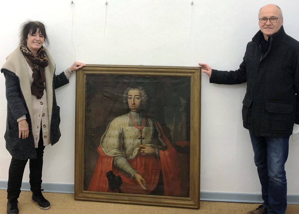 Sögel – Das Emslandmuseum Schloss Clemenswerth konnte zu Beginn des Jahres ein Gemälde des jungen Fürstbischofs Clemens August (1700 – 1761) erwerben. Es zeigt den Erbauer von Schloss Clemenswerth im Halbbildnis im Alter von ca. 23 bis 25 Jahren im Bischofsgewand. Der Körper ist leicht nach rechts gewendet, der Kopf nach links mit Blick zum Betrachter. Mit rotem Gewand und Hermelin sowie Kreuz und Ring weist er sich als hoher Würdenträger aus. Der auf der rechten Seite geöffnete Vorhang gibt den Blick auf Architekturelemente frei, die den hohen Stand des Abgebildeten unterstreichen. Bildnisse von Clemens August aus den 1720er Jahren gibt es nicht häufig. Der Maler des 107 (H) x 97 (B) cm großen Gemäldes ist nicht bekannt. Doch die Komposition und Haltung des Dargestellten reiht das Gemälde in die Gruppe jener Bilder ein, die in der Nachfolge des 1723 entstandenen Clemens-August-Portraits von Jan Frans von Douven entstanden sind. „Da Clemens August Schloss Clemenswerth sehr geliebt hat und dort viel Zeit verbrachte, habe ich dem Emslandmuseum das Portrait zum Kauf angeboten“, so Annette Gieling. Museumdirektor Oliver Fok sagt: „Mit dem Gemälde wächst unsere Sammlung nicht nur um ein wertvolles Stück, das uns die Person Clemens August wieder etwas näher bringt, sondern steigert auch die Authentizität des historischen Ortes Schoss Clemenswerth.“ Clemens August ließ die barocke Jagdsternanlage Schloss Clemenswerth in den Jahren 1737 bis 1747 mitten auf dem Hümmling bei Sögel errichten. Er schuf damit im Emsland nicht nur eine mächtige architektonische Spur seines kulturellen Wirkens sondern auch ein Symbol seines Machtanspruches bis an die äußersten Grenzen seiner Territorien. Ebenso wie Bauwerke sind auch Gemälde wie das Portrait von Clemens August Ausdruck von Macht- und Herrschaftsanspruch. Solche Gemälde der Landesherren hingen in den Häusern der Würdenträger, so wie heute der Bundespräsident in den Amtsstuben. Bevor das Gemälde der Öffentlichkeit auf Schloss Clemenswerth präsentiert werden kann, muss es sehr aufwendig restauriert werden.