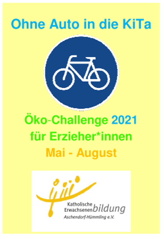 12. April 2021Sögel – Die Katholische Erwachsenenbildung veranstaltet eine Öko-Challange für kleine und auch größere Teams von Erzieherinnen und Erzieher von Mai bis August 2021.