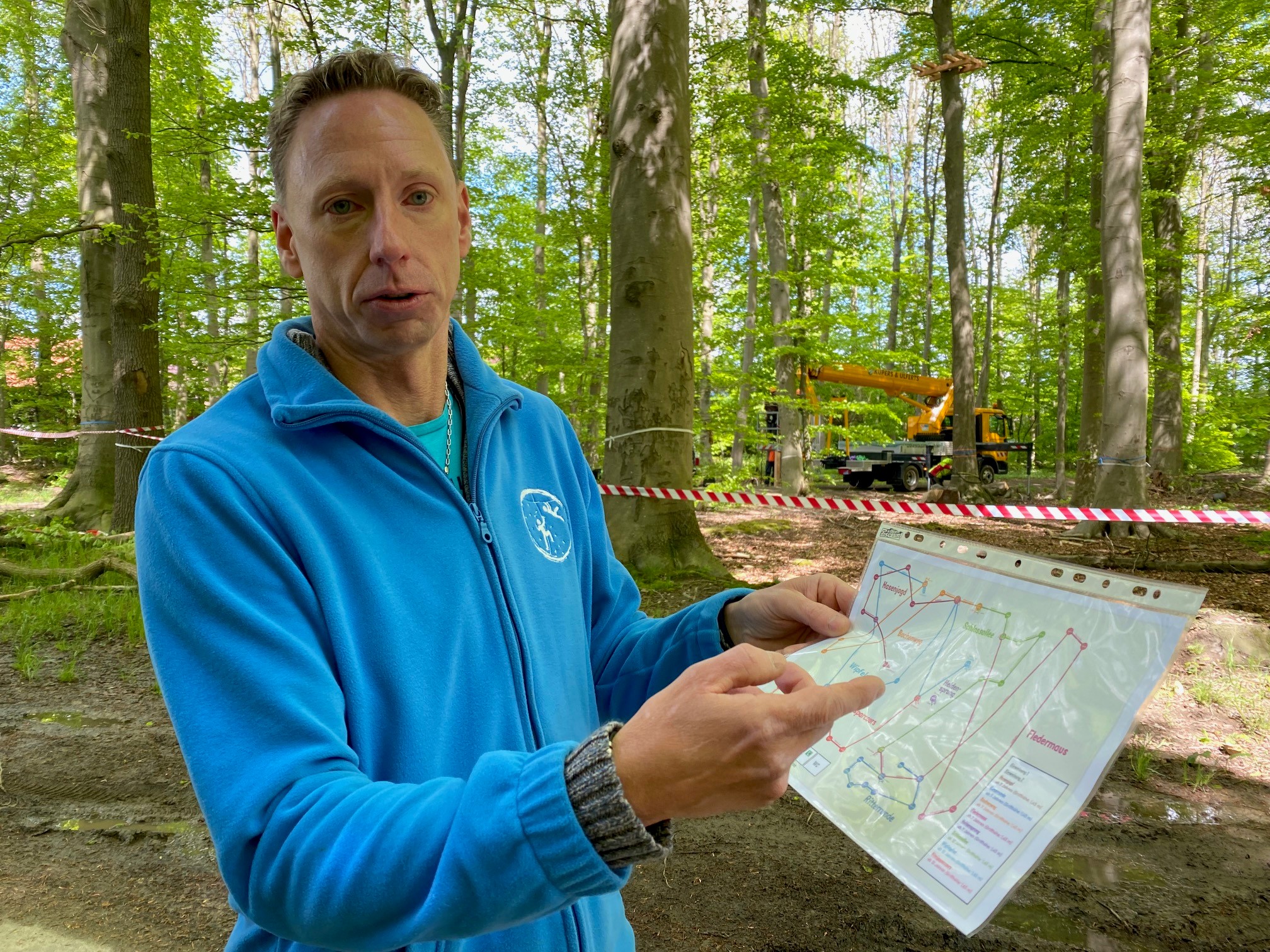 Wichtig beim Aufbau des Kletterwaldes sei den Betreibern eine Montage, die den Baumbestand mit überwiegend Buchen so gut es gehe schont. Dazu beitragen soll auch ein Wegesystem. Lüker spricht von „minimalen Eingriffen“ an den insgesamt 50 Bäumen, die für den Kletterwald genutzt werden. Ein Baumgutachter prüfe im Vorfeld, ob ein Baum überhaupt die Voraussetzungen mitbringe, um in den Kletterwald einbezogen zu werden.
