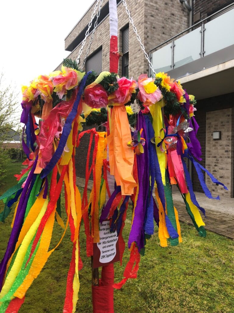 8. Juni 2023Sögel – Eine kuriose Geschichte rangt sich um den Maibaum des DRK-Tagestreffs Sögel. Zusammen mit den Kindern der KiTa Villa Kunterbunt bastelten die Gäste des Tagestreffs einen traditionellen Maibaum. Zum Maibaumaufstellen am Freitag spielte die Musikkapelle Hüven, es wurde gemeinsam gegrillt, gesungen und getanzt. Das Fest hat den Seniorinnen und Senioren so gut gefallen, dass viele am Ende des Tages gerne noch geblieben wären. Auch bei den Sögelern, die sich immer an den wechselnden Dekorationen am Tagestreff erfreuen, kam der schön geschmückte Maibaum gut an. Er schaffte es sogar als Leserfoto, von Barbara Kirschner eingesandt, in den EL-Kurier.