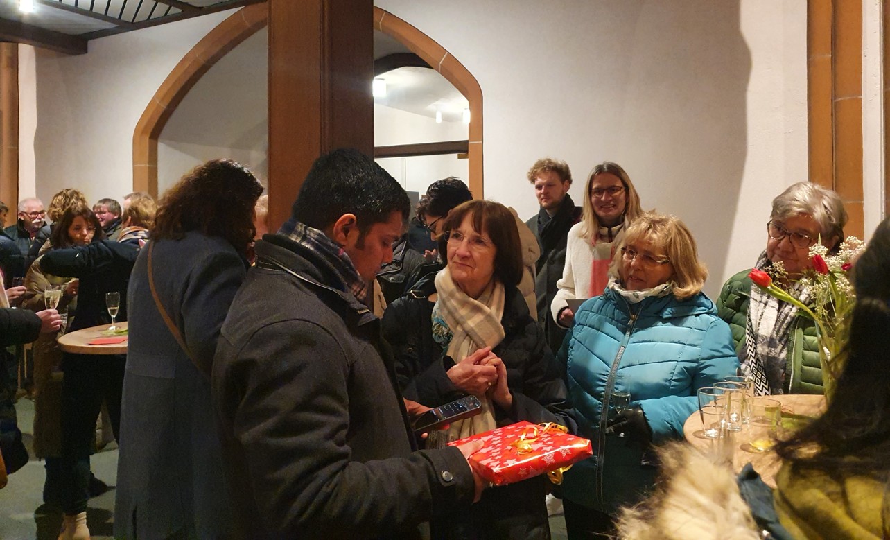 Beim Stehempfang im Kirchencafe, gratulierten nach dem Gottesdienst die kirchlichen Gruppen und Gläubigen aus der Pfarreiengemeinschaft ihrem Pater Andrews zum Jubiläum und bedankten sich bei ihm für die allzeit herzliche Seelsorge.