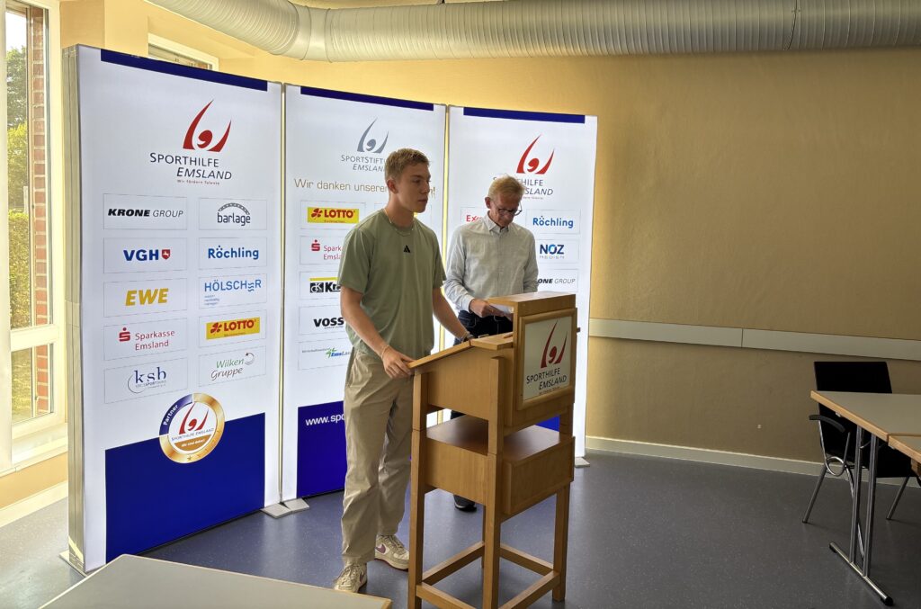 Einen besonderen Moment des Abends lieferte U23-EM- Bronzemedaillengewinner Thorben Finke, der von seinem erfolgreichsten Sportjahr berichtete. „Ohne die Unterstützung der Sporthilfe Emsland wäre ich nicht da, wo ich heute bin“, betonte er. Für die Zukunft peilt Finke bereits die Teilnahme an den Olympischen Spielen 2028 in Los Angeles an.