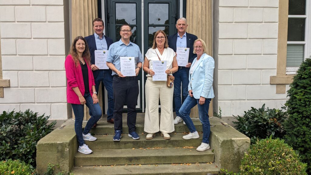 26. Oktober 2025Sögel – Bei der Samtgemeindeverwaltung in Sögel gab es im Juli bzw. August 2025 gleich vier Dienstjubiläen mit einer Beschäftigungszeit von insgesamt 130 Jahren. Im Rahmen einer Feierstunde wurde Ingrid Cloppenburg für 40 Dienstjahre geehrt, Jürgen Rolfes ebenfalls für 40 Dienstjahre, Ralf Hömmeke für 25 Dienstjahre und Frank Tholen ebenfalls für 25 Dienstjahre. Drei der Jubilare sind bereits seit ihrer Ausbildung bei der Samtgemeinde Sögel beschäftigt.
