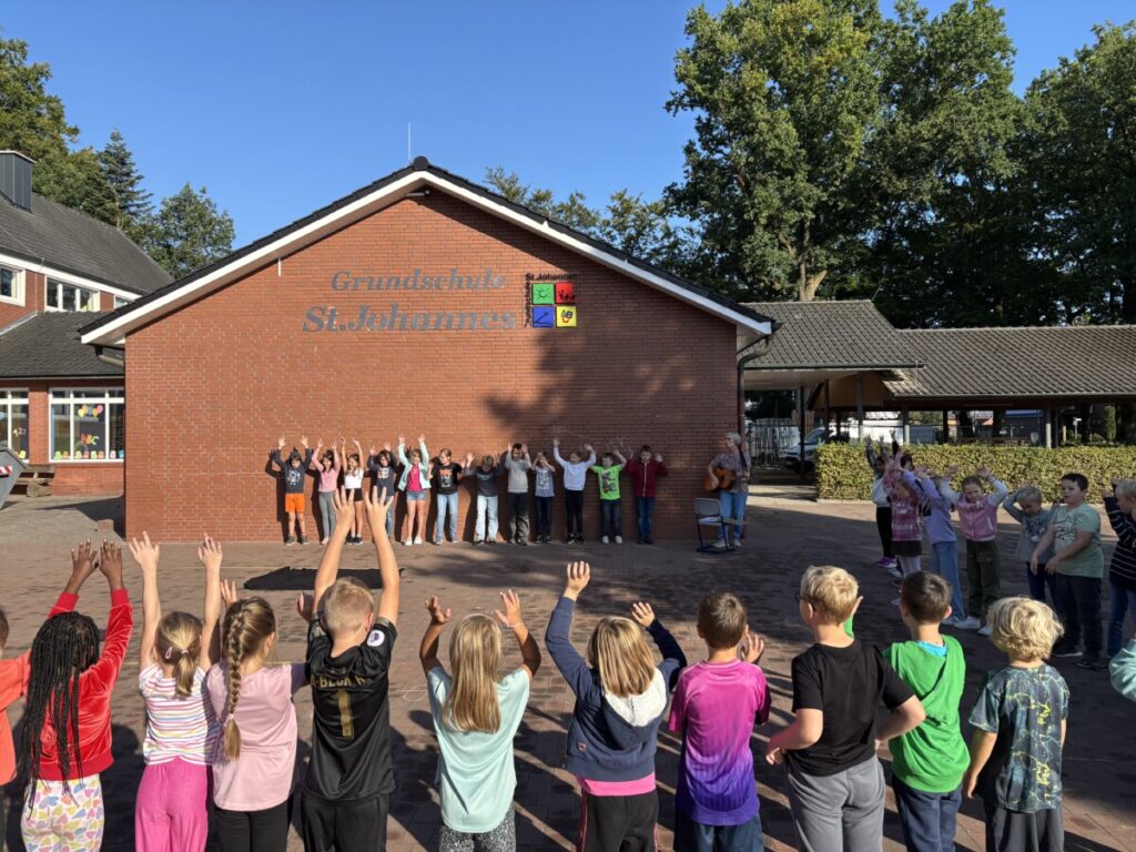 1. November 2025Spahnharrenstätte – Auch in diesem Jahr heißt es im September wieder „Freeidach is Plattdach“ in unserer Schule. Die Viertklässler präsentieren jeden Freitag Bewegungsspiele und Lieder auf Platt, die sie in der Platt-AG eingeübt haben. Mit Begeisterung machen alle Kinder mit und lernen so auf spielerische Art die plattdeutsche Sprache kennen. Die Lehrerinnen nutzen das Gelernte dann im Unterricht für kleine Bewegungspausen.