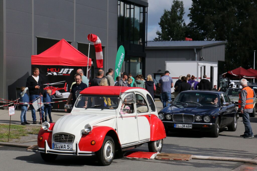 Großes Interesse weckten zudem die rund 90 Oldtimer, die am Sonntag von den „Oldtimerfreunden Meppen“ und weiteren Eigentümern präsentiert wurden. Die Besitzer stellten ihre liebevoll gepflegten Fahrzeuge nicht nur aus, sondern starteten auch zu einer einstündigen Ausfahrt rund um Sögel. Bei der Station der Dekra konnten Oldtimerbesitzer zudem ihre Fahrzeuge fachkundig einschätzen lassen.
