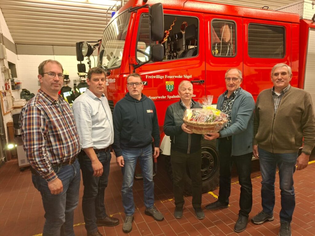 Zu guter Letzt bedankte sich Dieter Steenken, der Ortsbrandmeister der OF Spahnharrenstätte, mit einem Präsentkorb bei Wilhelm Jansen. Sein Dank gilt nicht nur für die letzten 16 Jahre, sondern für seine über 40-jährige Tätigkeit in Führungspositionen der Feuerwehr Spahnharrenstätte. Sei es als stellvertretender Ortsbrandmeister, danach 20 Jahre als Ortsbrandmeister, als stellv. Gemeindebrandmeister und zuletzt als Initiator und 1. Vorsitzender des Fördervereins.