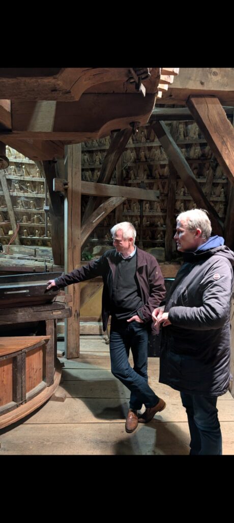 Anschließend ging es nach Hüven. Die Restaurierung der Hüvener Mühle, getragen vom Heimatverein Aschendorf-Hümmling e.V., bewahrt ein einzigartiges Kulturdenkmal der Region. Mit der Sanierung bleibt nicht nur historische Technik erhalten, sondern auch ein identitätsstiftender Ort für Besucherinnen und Besucher.
