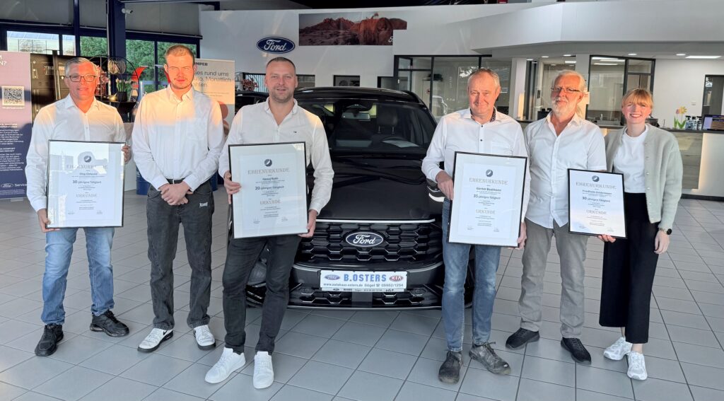 Langjährige Mitarbeiter geehrt – 120 Jahre gebündelte Erfahrung beim Autohaus Osters