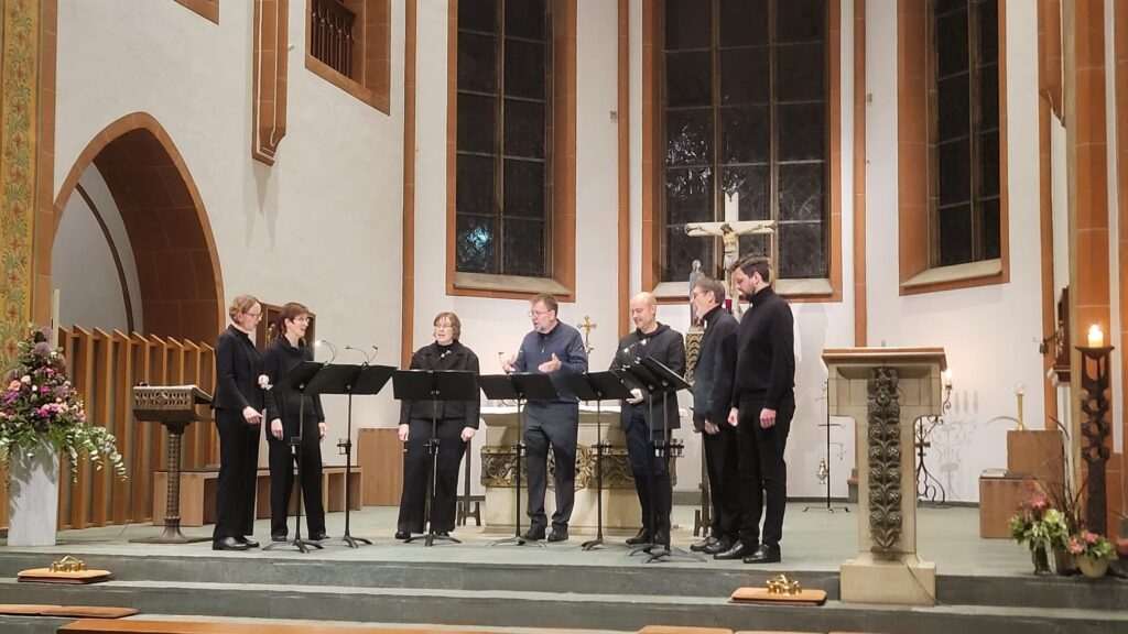16. Dezember 2025Mit einem eindrucksvollen Vokalkonzert zu Ehren des großen Renaissancekomponisten Giovanni Pierluigi da Palestrina anlässlich seines 500. Geburtstags hat das Ensemble dascanioConsort das Publikum in der St. Jakobus-Kirche in Sögel begeistert. Regionalkirchenmusiker Jörg Christian Freese, der die sieben Sängerinnen und Sänger nach Sögel eingeladen hatte, sagte bei seiner Begrüßung: „Das Repertoire der sieben ausgebildeten a-capella-Spezialisten umfasst Werke der frühesten bekannten Mehrstimmigkeit über die Hochzeit der Vokalpolyphonie im 15./16. Jahrhundert, die Barockepoche, bis hin zur Gegenwart“. Der Leiter und Gründer des Ensembles, Daniel Lösker, ließ das Publikum wissen, dass Giovanni Pierluigi da Palestrina „die Ikone der katholischen Kirchenmusik, der Meister der Vokalpolyphonie am Ausgang der Ranaissance, ist und großen Einfluss auf den weiteren Verlauf der Musikgeschichte hatte. Der sogenannte Palestrina-Stil wird bis heute bei musikwissenschaftlichen Seminaren sowie an Hochschulen und Konservatorien gelehrt“.