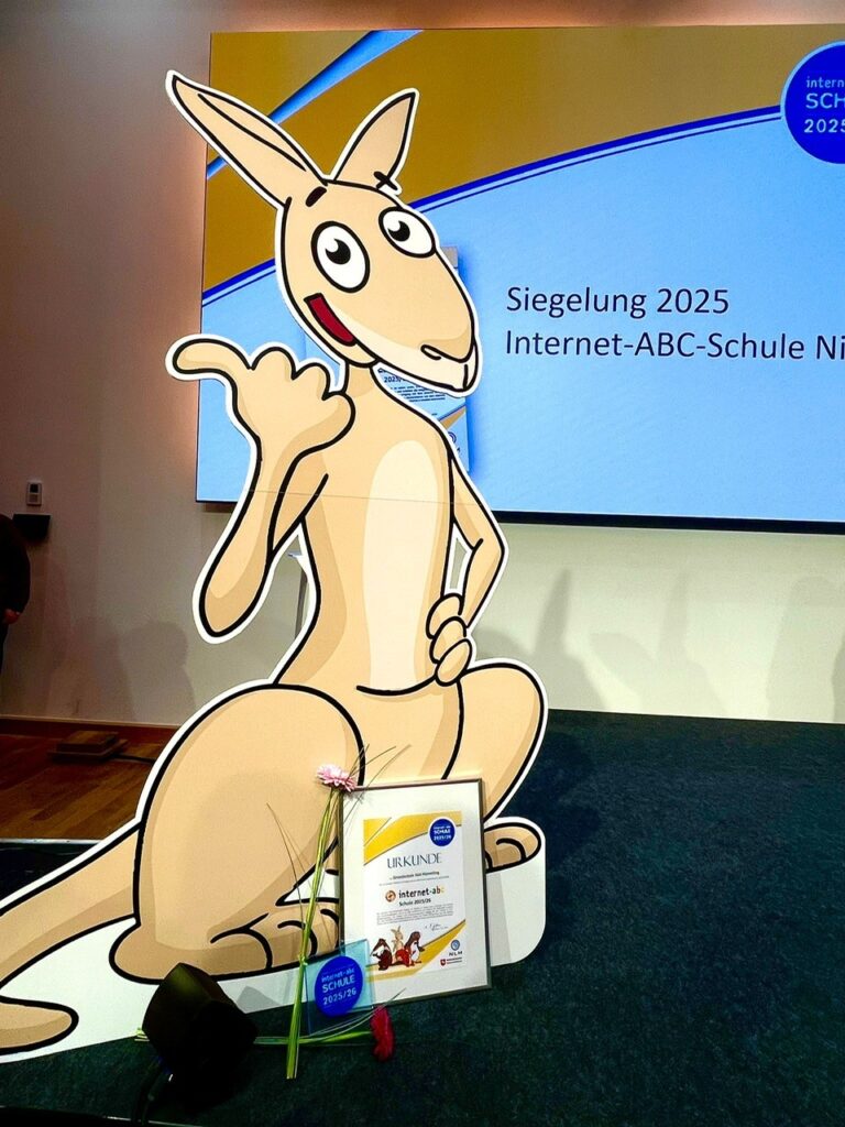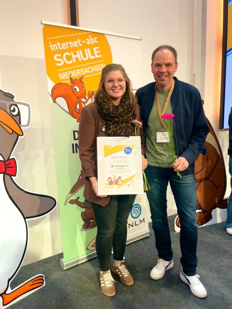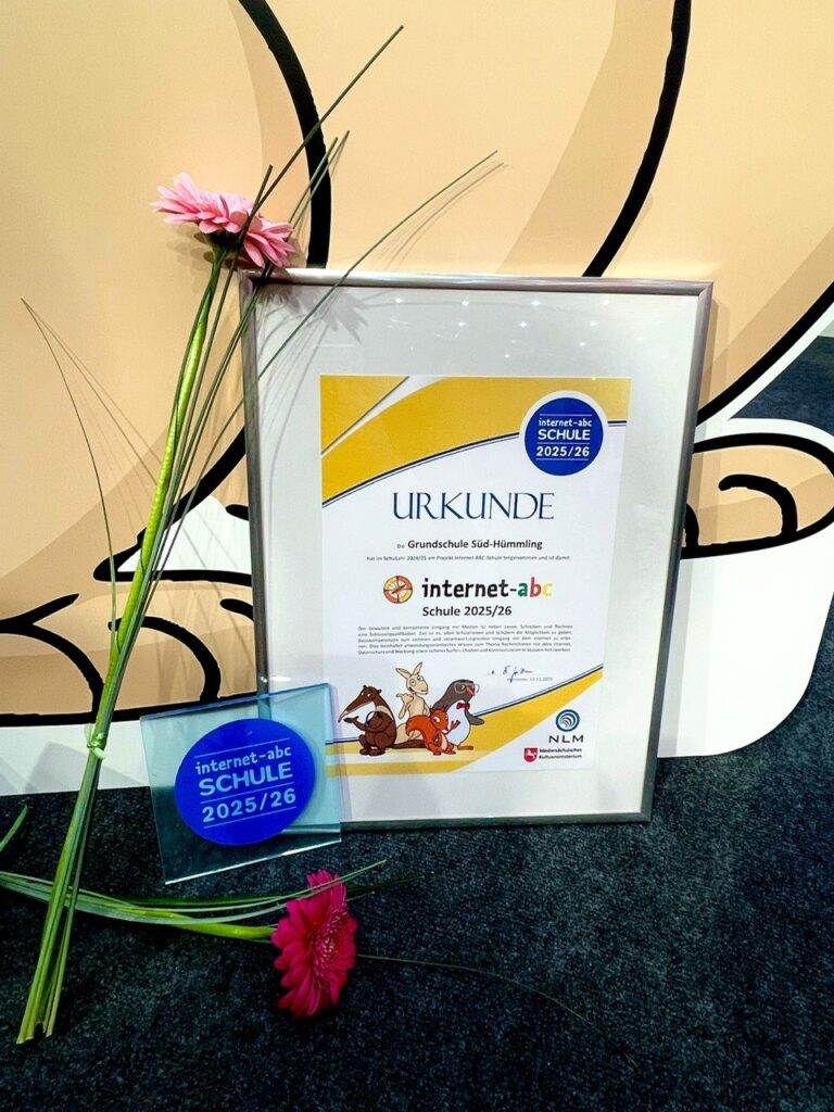 Klein Berßen – Im November durfte sich die Grundschule Süd-Hümmling über eine besondere Ehrung freuen: Die Schule wurde beim Tag der Medienkompetenz in Hannover als „Internet-ABC- Schule“ im Land Niedersachsen ausgezeichnet! Diese Auszeichnung würdigt das Engagement, Kinder frühzeitig, spielerisch und nachhaltig an einen verantwortungsvollen und sicheren Umgang mit dem Internet heranzuführen.