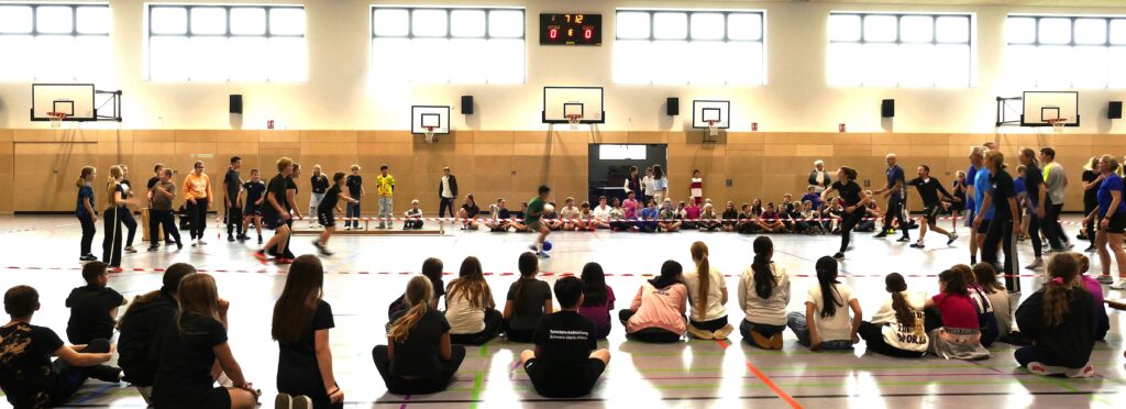 Die Veranstaltung begann in der Sporthalle mit einem Dodgeballturnier der Klassen fünf und sechs, wobei im Anschluss daran die Lehrkräfte gegen die Schüler antraten. Dabei bewiesen sowohl die Schüler als auch die Lehrer ihre Beweglichkeit und Fitness und zeigten deutlich, dass Sport auch großen Spaß machen kann.