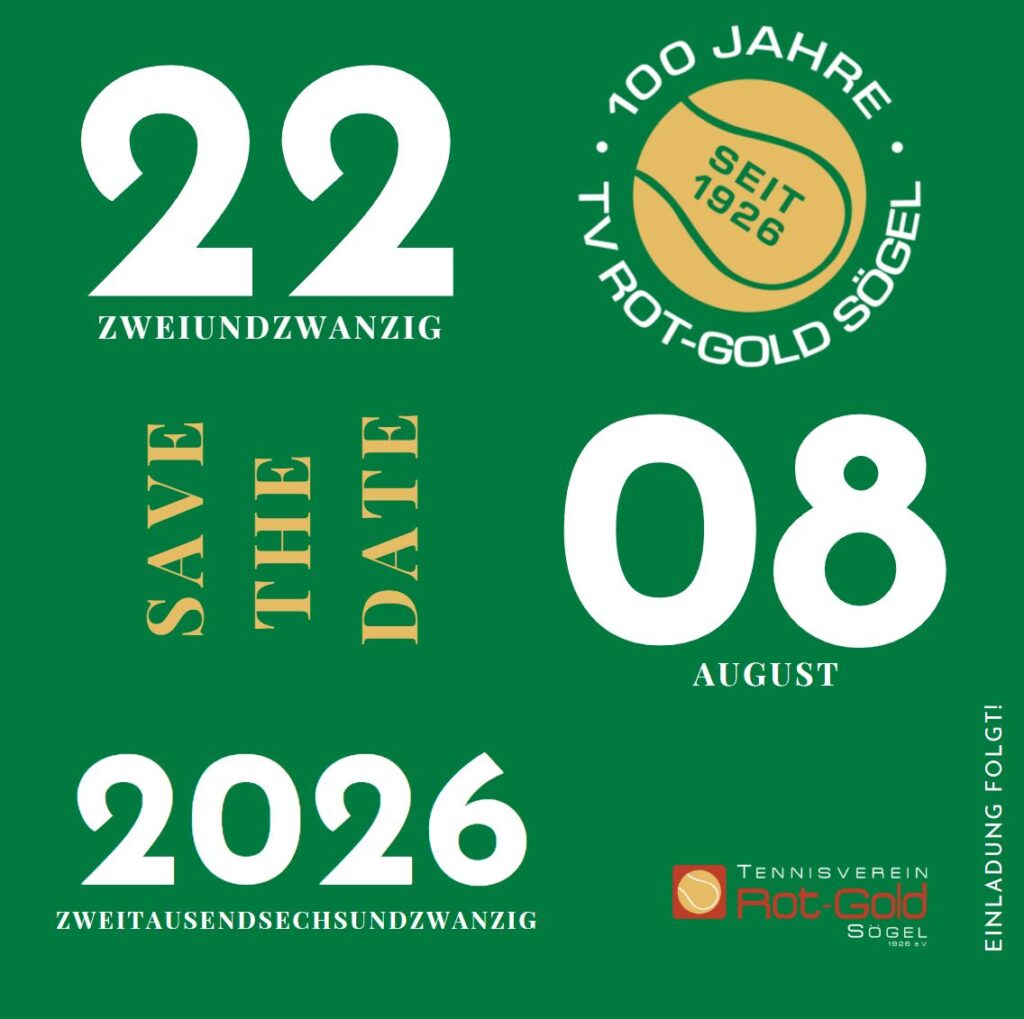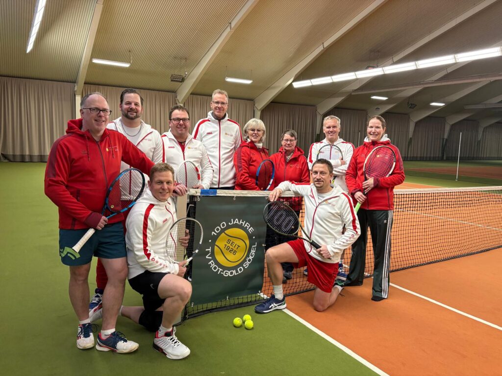 Sögel – Gleich zu Jahresbeginn gab der Vorstand des Tennisvereins Rot-Gold Sögel den Startschuss ins Jubiläumsjahr 2026. Ein neu gestaltetes Jubiläumslogo fand zur Freude des Vorstandes und des Trainers Svetko bereits an den Netzpfosten einen geeigneten Platz. Das gesamte Jahr soll im Zeichen des außergewöhnlichen Jubiläums stehen. So zeigte Sportwart Max Steuber bereits die große 100 auf seinem Schläger. Der sportliche Start wird mit dem Jubiläums-Mitternachtsturnier am 21.02.26 stattfinden, während die große Jubiläumsveranstaltung mit Schleifchenturnier und Sommerfest für das Wochenende rund um den 22. August terminiert ist.