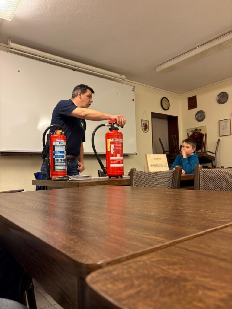 Danach wurden die Feuerwehrfahrzeuge vorgestellt. Die Kinder durften diese aus nächster Nähe betrachten und bekamen die einzelnen Geräte ausführlich erklärt. Besonders beeindruckend war die Vielfalt der technischen Ausrüstung, die zum Einsatz kommt. Ein weiterer Höhepunkt war die eindrucksvolle Vorführung eines Fettbrandes. Den Kindern wurde dabei deutlich gemacht, wie gefährlich ein solcher Brand ist und warum man brennendes Fett niemals mit Wasser löschen darf.