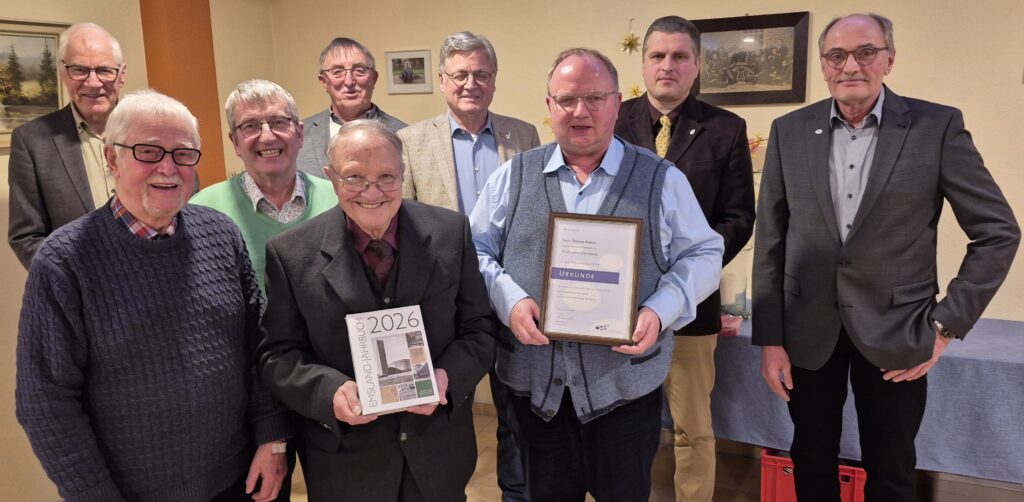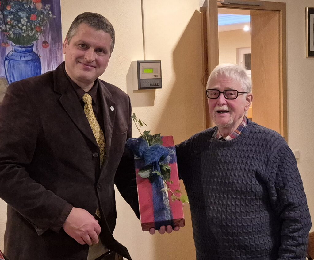Eine besondere Würdigung erhielt der langjährige Dirigent Werner Schüler, der seine aktive Tätigkeit aus Altersgründen beendet hat. Schüler, inzwischen 85 Jahre alt, prägte den Chor über Jahrzehnte hinweg: Seit 1981 war er für den Männerchor tätig, davon 25 Jahre als Chorleiter und weitere 20 Jahre als stellvertretender Chorleiter. Der Vorsitzende Henk Benkemper dankte ihm mit einem Präsent für mehr als 45 Jahre musikalisches Engagement.