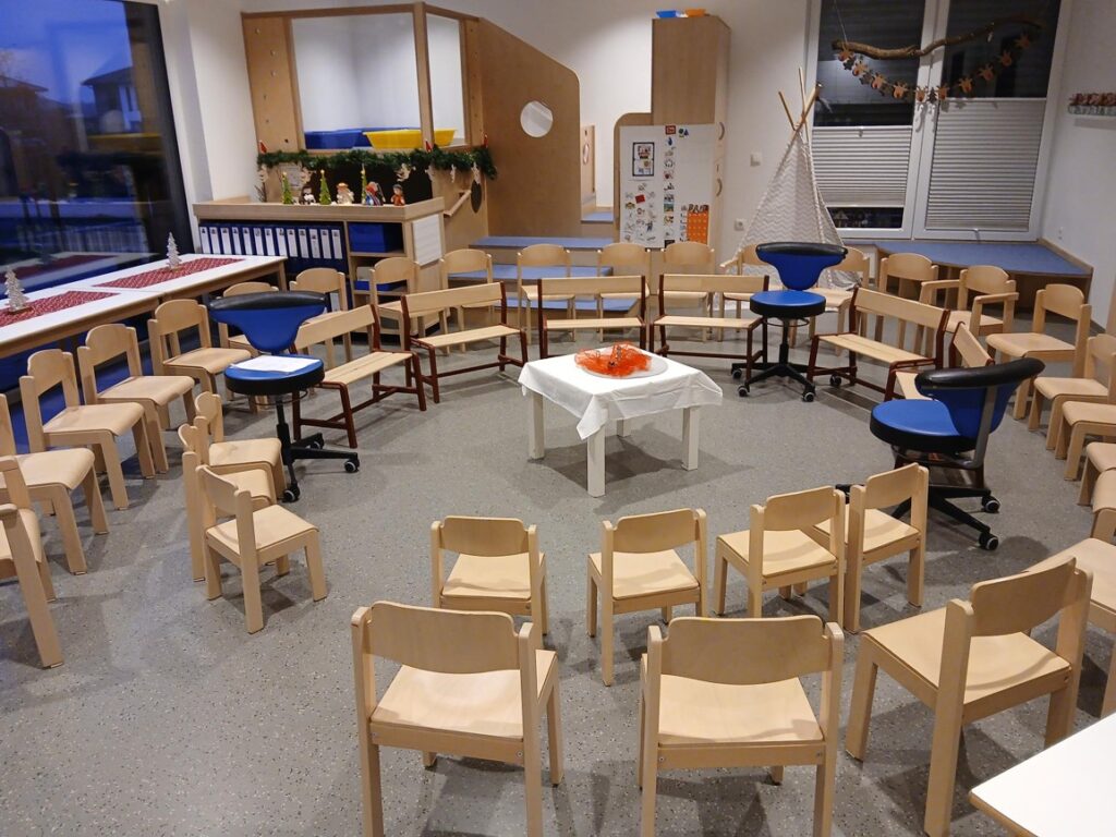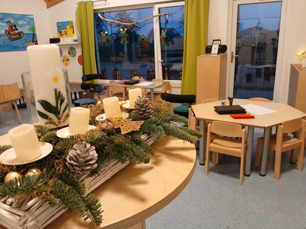 In dieser Station durfte jede Familie ein Herz ausschneiden und mit einem persönlichen Wunsch versehen. Die Herzen schmücken jetzt unsere KiTa.
