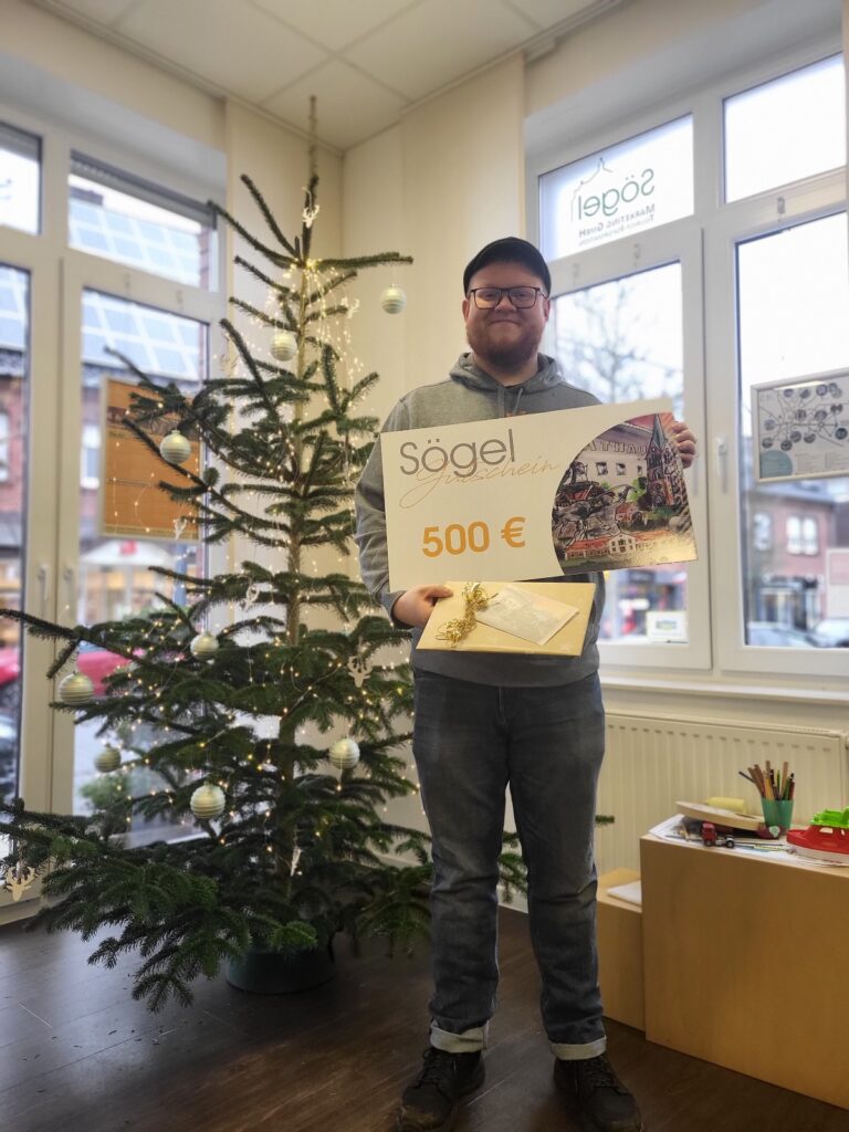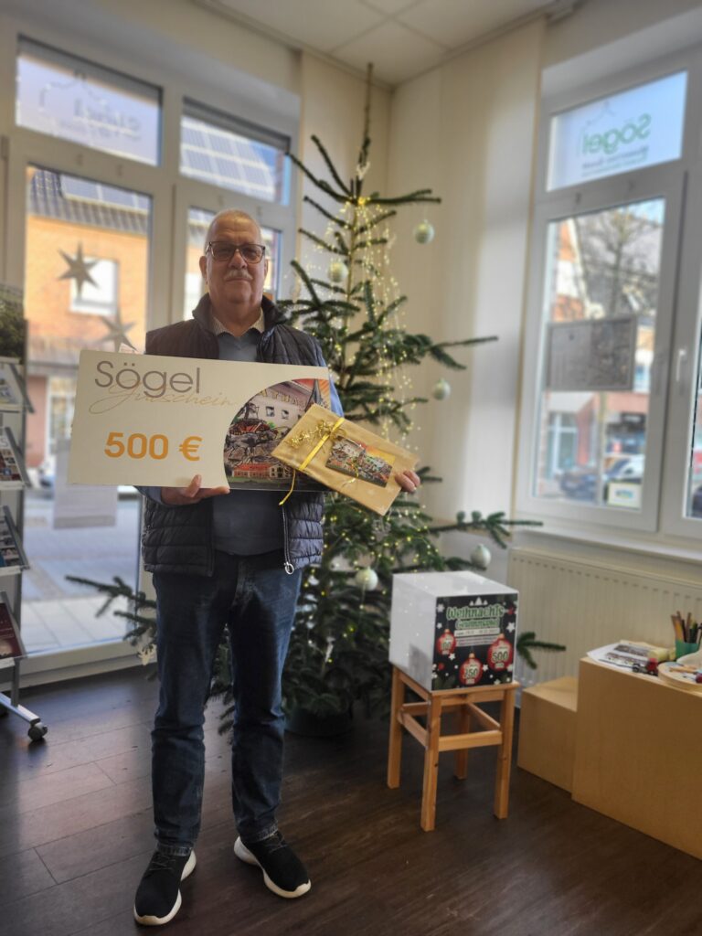 Auch in der Adventszeit des Jahres 2025 fand wieder das große Weihnachtsgewinnspiel des Wirtschaftsverbandes Sögel e. V. und der Sögel Marketing GmbH statt. Dabei wurden Einkäufe ab 25,00 EUR in den 34 beteiligten Sögeler Unternehmen mit Platzhirsch-Aufklebern belohnt. Wer zehn Platzhirsch-Aufkleber durch fleißiges Heimatshoppen gesammelt hatte, konnte an einer der an jedem Freitag in der Adventszeit stattfindenden Gewinnziehungen teilnehmen. Pro Gewinnziehung wurden Sögel-Einkaufsgutscheine im Wert von 1.300 EUR herausgegeben (Gewinner siehe rechts).