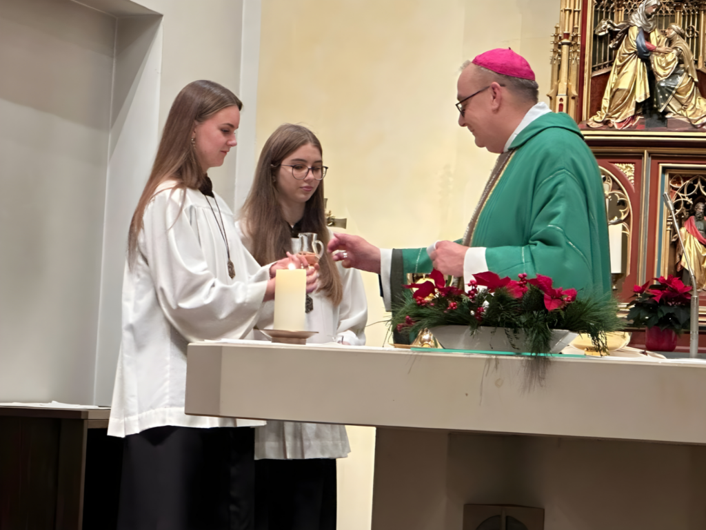 1. März 2026Hüven – Im Rahmen seiner Visitations-Reise durften sich auch die Eistener und Hüvener auf Bischof Dr. Dominicus Meier freuen und mit ihm einen feierlichen Gottesdienst in der St. Bonifatius-Kirche Hüven feiern. Gleich zu Anfang richtete er einige Worte an die Gemeinde, begrüßte die Teilnehmenden der Messe und erzählte davon, wie er in diesen Tagen aufgrund seiner Reise von Osnabrück auch mehrfach schon Hüven durchquerte und auf die gelebte Gemeinschaft aufmerksam wurde. Durch verschiedenste Gruppen und Vereine treffen Menschen aufeinander und leben das Miteinander.
