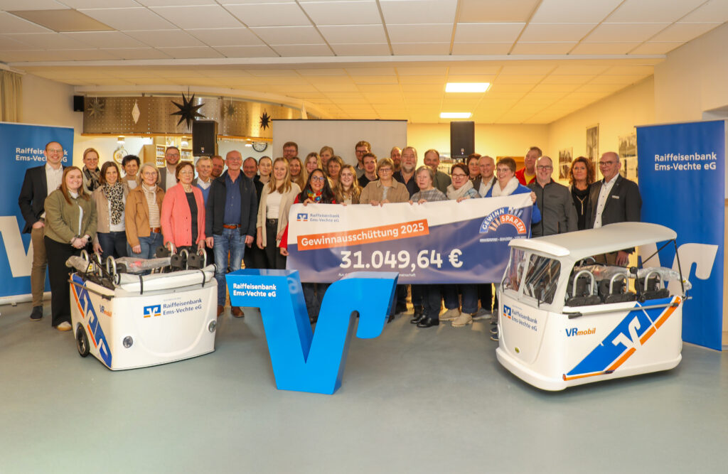1. März 2026Das gesellschaftliche Zusammenleben wird im ländlichen Raum vom Ehrenamt getragen: Die Arbeit in Vereinen und karitativen Einrichtungen wird zumeist auf ehrenamtlicher Basis verrichtet. Um diese wichtige Arbeit zu würdigen, fördert die Raiffeisenbank Ems-Vechte eG gemeinnützige Projekte in der Region über das Gewinnsparen.