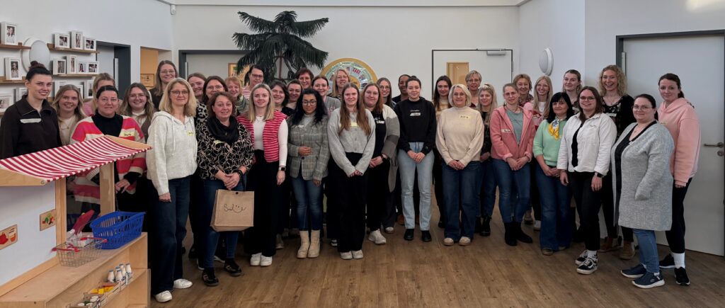 1. März 2026Sögel – Das Familienzentrum kath. KiTa St. Jakobus hat alle pädagogischen Fachkräfte an einem Nachmittag eingeladen. Die Tagesordnung umfasste u.a. die partizipatorische Eingewöhnung und der Umgang mit Hausbesuchen. Mitarbeiter der kath. KiTa Spahnharrenstätte präsentierten ihr Eingewöhnungsmodell. Einig waren sich alle 38 Kollegen und Kolleginnen: „Das Kind gibt das Tempo vor“. Für mögliche Hausbesuche hat das Familienzentrum eine praktische Durchführung erarbeitet. Ergebnis der Tagung war auch, dass das Krippentreffen jährlich wiederholt wird.