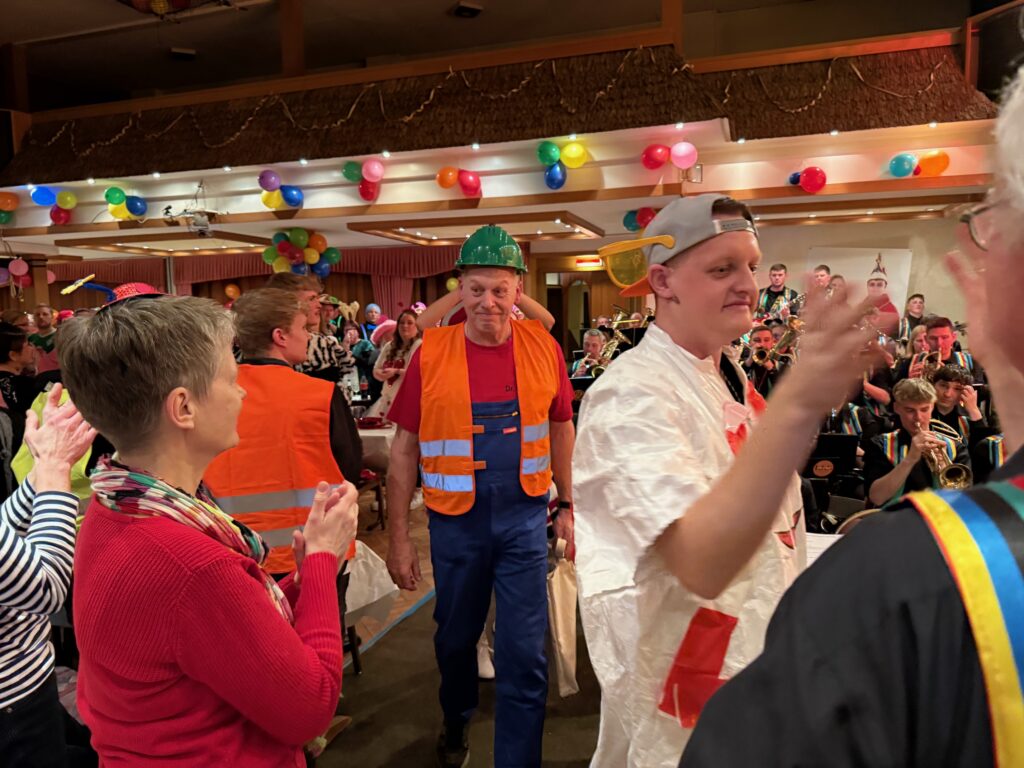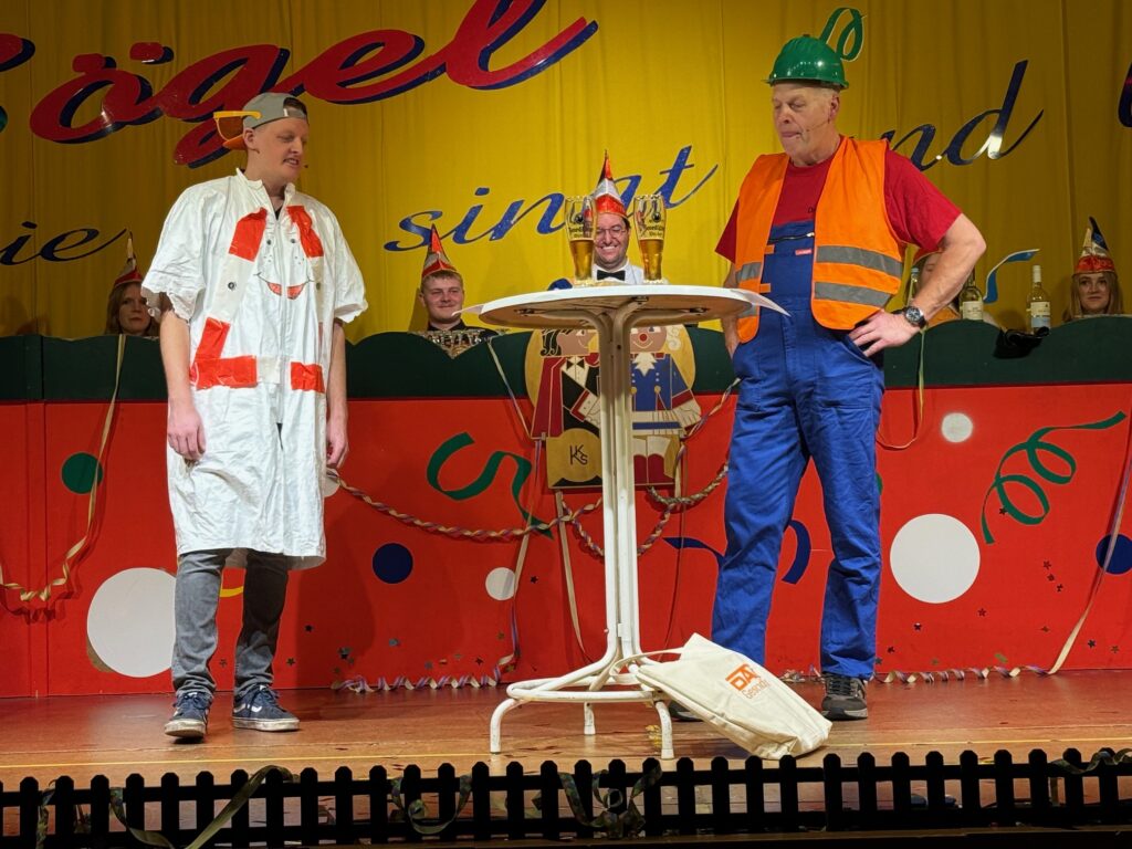 Die regionale Politprominenz bekam von den Bauarbeitern Simon und Wolfgang in plattdeutscher Mundart ihr Fett weg: „Frieden mit Werlte – durch Inklusion“ sozusagen, schließlich stammt unsere Schützenkönigin aus der Stadt. Dazu nahmen sie auch andere „Skandale“ in Sögel aufs Korn.
