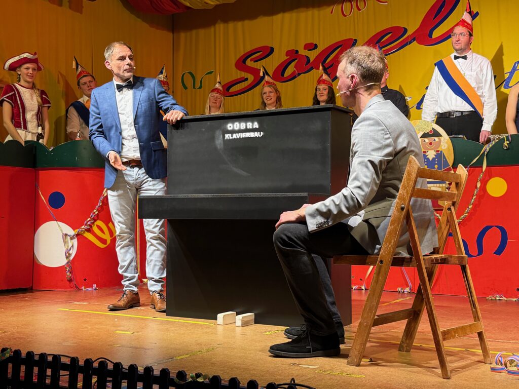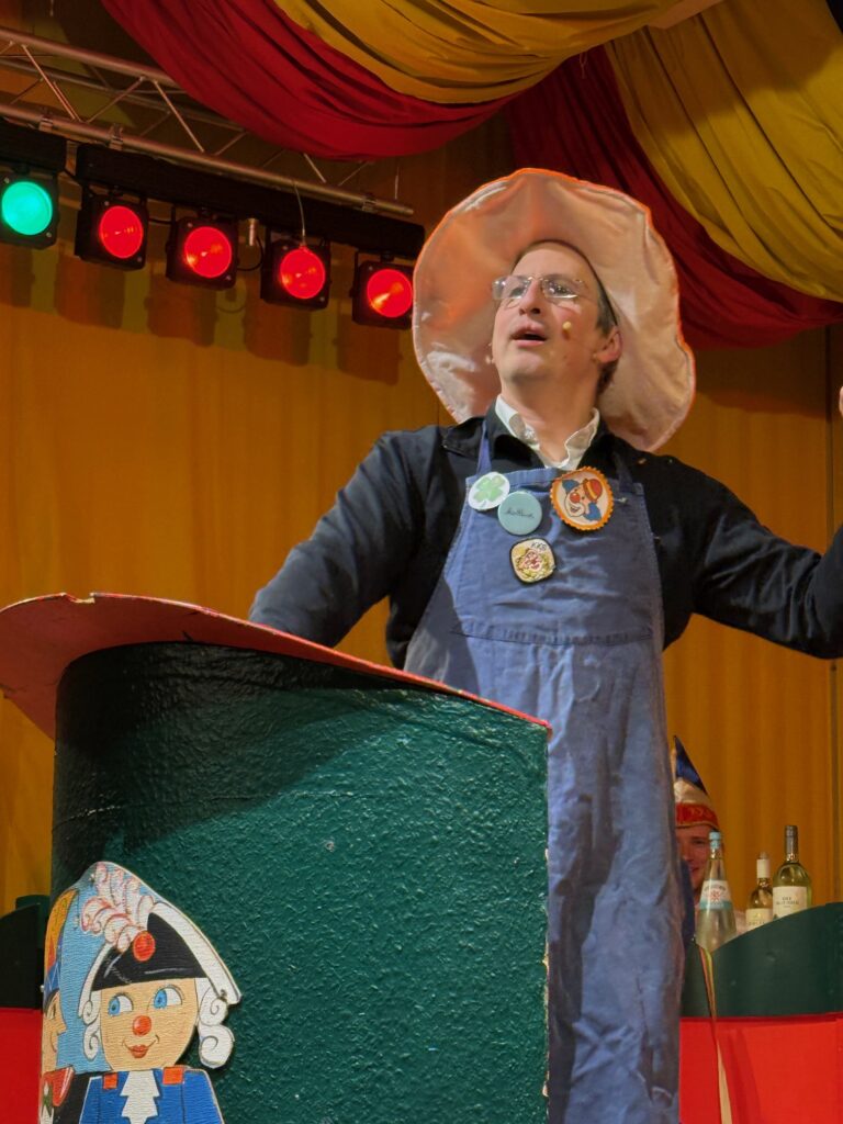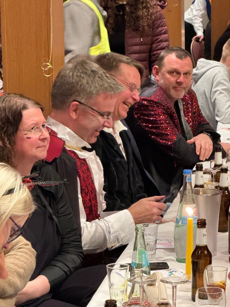 Der Einmarsch von Pastor Matthias Voss ließ wieder einiges erwarten. Als Gartenmann „predigte“ er gekonnt lokal- und kirchenpolitisch und löste damit wahre Begeisterungstürme aus. Vom KSB-Präsident Michael Koop, seinem Sport-Campus mit dem Sporthotel und angedachter 50-m-Schwimmhalle bis hin zum fitnessorientierten ehemaligen Kollegen Bernd der sich nach Australien „absetzte“, kamen die Pointen wie aus der Konfettikanone.