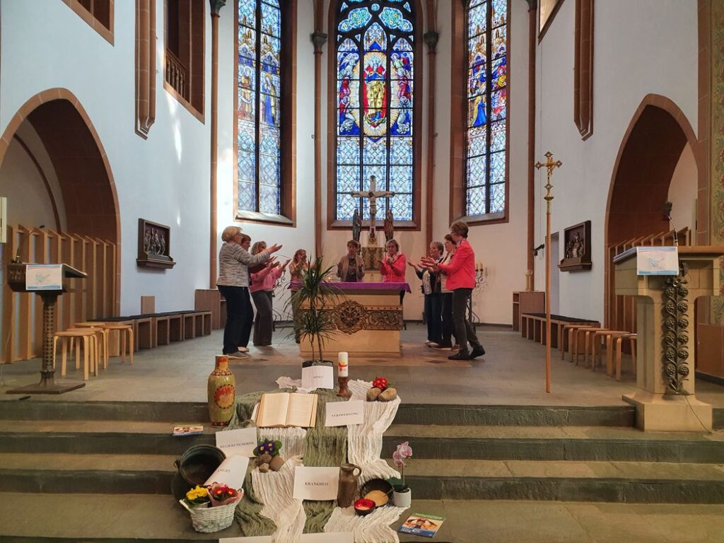 Nach der Begrüßung durch Thea Lange vom kfd-Leitungsteam gab Lektorin Andrea Dominik einen Einblick in die Situation Nigerias. Trotz großer Bodenschätze sei das Land von Armut, Gewalt und Konflikten geprägt. In den Fürbitten wurde besonders für die unterdrückten Frauen und Kinder in Nigeria sowie für Frieden in der Welt gebetet.