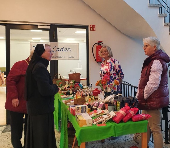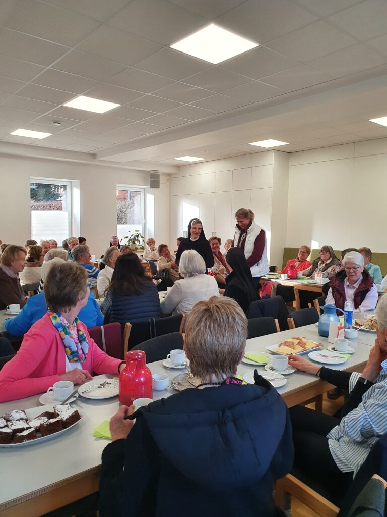 Zum Abschluss des ökumenischen Gottesdienstes dankte Thea Lange dem Organisationsteam beider Gemeinden. Auf katholischer Seite wirkten Gisela Arling, Maria Thünemann (Pastorale Koordinatorin), Gertrud Meiners und sie selbst mit, von der evangelischen Markuskirche Lektorin Andrea Dominik, Melanie Schmidt, Monika Haje und Elfriede Binner. Ihr weiterer Dank galt Eva-Maria Prinz, dem Chor, den Instrumentalistinnen sowie der meditativen Tanzgruppe. Thea Lange lud alle Gottesdienstbesucher ins Gemeindezentrum St. Jakobus zu Kaffee und Kuchen ein. Dort hieß Maria Thünemann auch die neuen Thuener Schwestern M. Engratia und Maria Matthäa herzlich willkommen.