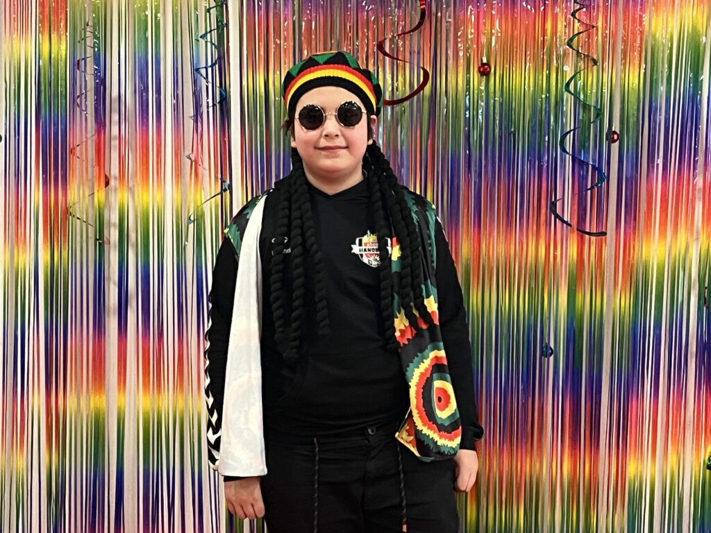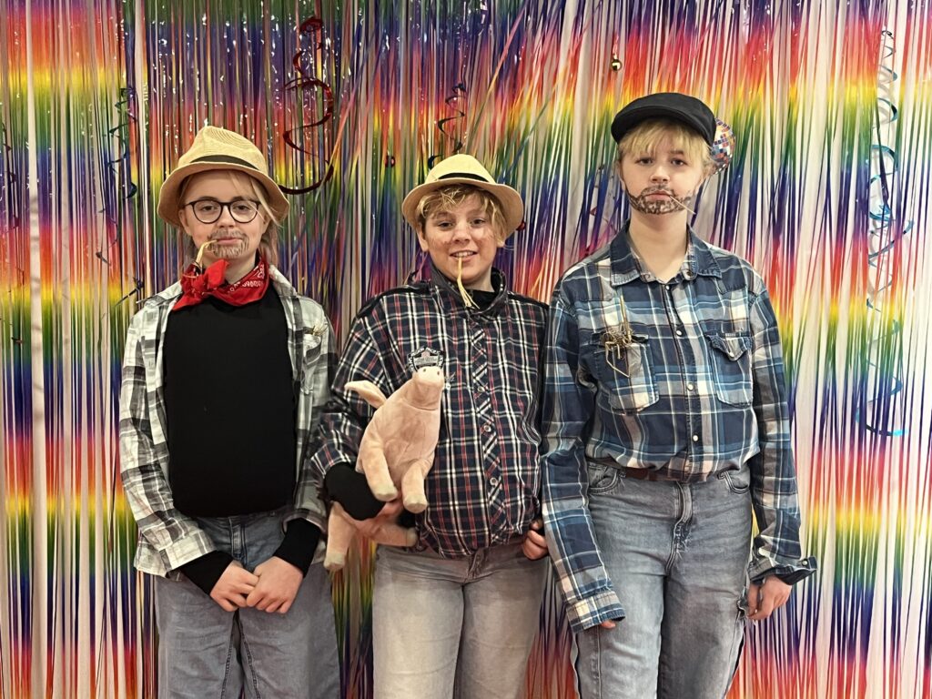 Während der ersten Pause konnten sich alle Verkleideten vor einem bunten Hintergrund im Foyer der Aula fotografieren lassen und ggf. für den Kostümwettbewerb anmelden. Bei diesem gab es Preise für die besten Einzel-, Gruppen- und Klassen- bzw. Kurskostüme.