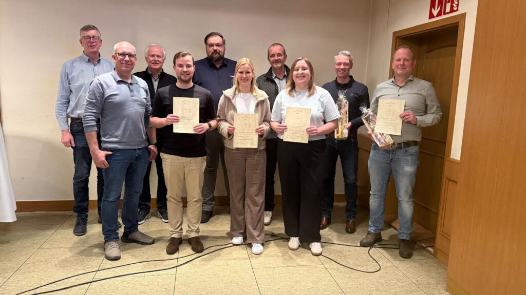 Geehrt wurden für 15-jährige Mitgliedschaft Lea Koldemeyer, Anna Maria Wimberg und Philip Dierkes. Für 40-jährige Mitgliedschaft wurden Johannes Völker, Heiner Wimberg und Andreas Jansen geehrt. Jens Eilers schied nach 10 Jahren aus dem Karnevalsausschuss aus. Im Vorstand schied als Schriftführer nach 12 Jahren Silvio Jauk aus. Als Nachfolgerin konnte Anna Maria Wimberg einstimmig gewählt werden. Als 1. Vorsitzender wurde Stephan Schmees ebenfalls einstimmig wiedergewählt.