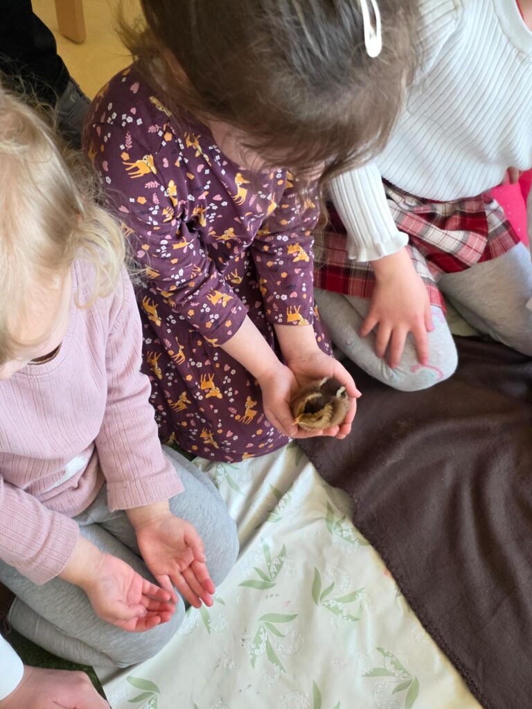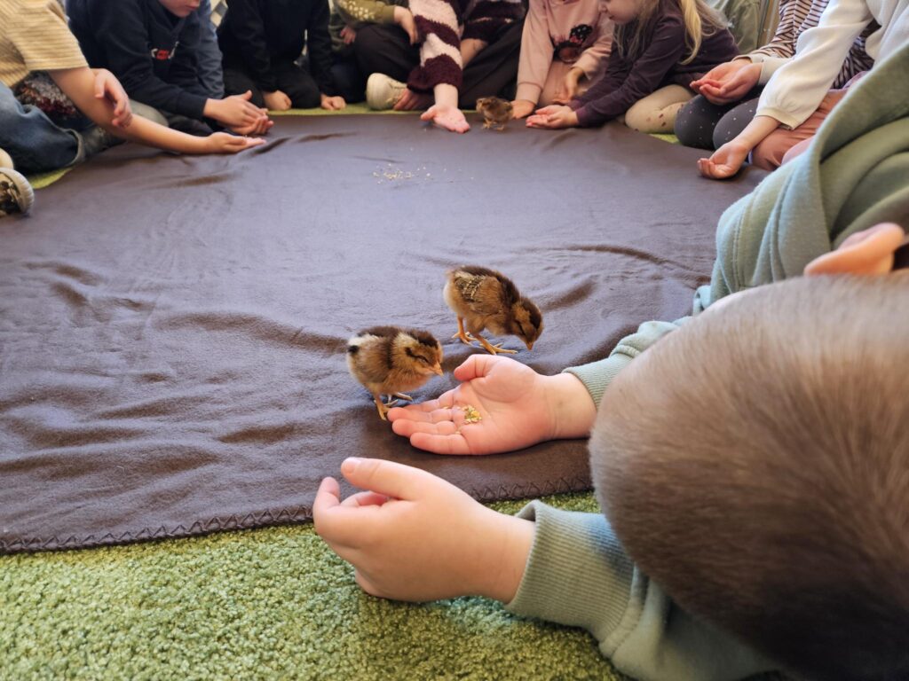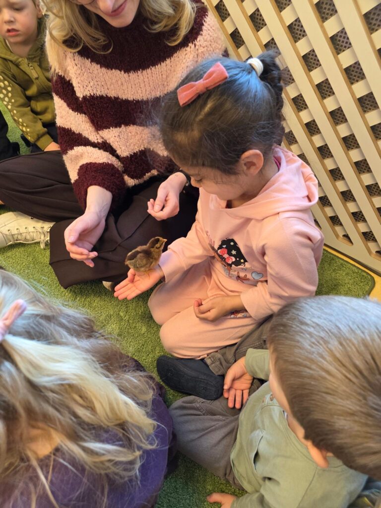 4. April 2026Sögel – In der KiTa Sonnenhügel in Sögel durften die Kinder sich über einen besonderen Besuch freuen. Frau Geyer und ihre Kollegin vom Umweltbildungszentrum Vrees hatten fröhliche Gäste dabei: kleine Küken, die sie durch die Gruppen führend vorstellten und spannende Einblicke in die Welt der Küken gab. Die Kinder hatten die Möglichkeit, die Küken sicher zu beobachten und auch zu streicheln. Während einige Kinder die Küken lieber aus der Distanz betrachteten, trauten sich andere, Körnerfutter auf die Hand zu geben. Die Küken liefen prompt heran und naschten die Körner direkt aus den Händen. „Das kitzelt!“, riefen die Kinder begeistert. Der Umgang mit den Tieren tat den Kindern sichtbar gut. Sie zeigten Verantwortungsbewusstsein und gingen behutsam mit den Küken um. Sehr beeindruckend war die Ruhe der Kinder während des Besuchs, damit die Küken sich nicht erschreckten. Der tierische Besuch brachte strahlende Gesichter der Kleinen, die noch lange von diesem Erlebnis erzählten. Wir bedanken uns herzlich bei dem Umweltbildungszentrum Vrees für diese wunderbare Aktion.