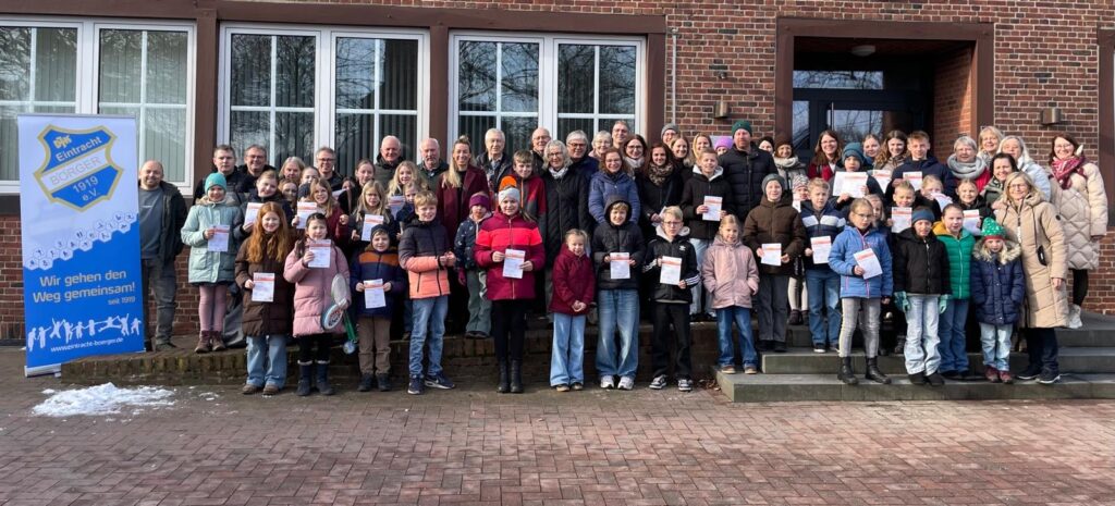 4. April 2026Börger – Im Gemeinde- und Kulturzentrum Börger fand die feierliche Verleihung der DOSB-Sportabzeichen 2025 statt. Insgesamt 45 Erwachsene, 63 Kinder und Jugendliche sowie 14 Familiensportabzeichen konnten in diesem Jahr vergeben werden.
