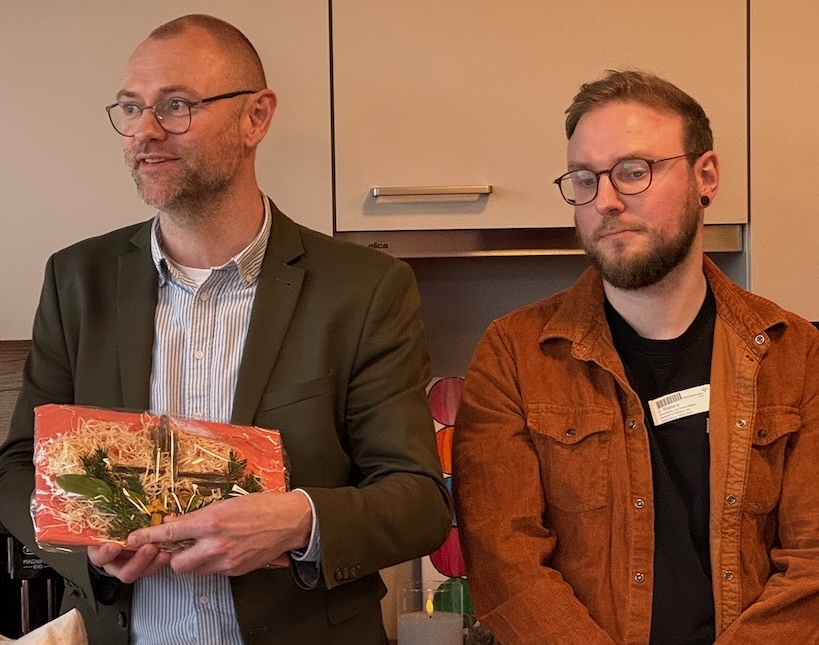 Thomas Kock (Stellvertretender Geschäftsführer des Hospitals) sprach von einem gelungenen Gemeinschaftsprojekt. „So funktioniert unsere Palliativstation noch viel besser“, erklärte er. Gemeinsam mit Stationsleiter Julian Walters überreichte er zur Einweihung ein Kreuz. Walters hob hervor, dass der Wintergarten durch viele helfende Hände realisiert worden sei. Der neue Raum sei eine wichtige Ergänzung – für Patientinnen und Patienten ebenso wie für Angehörige und Mitarbeitende. Dem Hospizverein sprach er ein besonderes Lob für dessen vielfältiges Engagement aus.