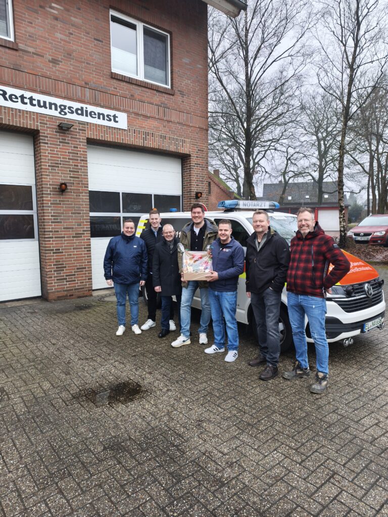Als Zeichen der Anerkennung überreichte der Vorsitzende der CDU Sögel, Jannis Kuper, einen Präsentkorb an Jens Poltrock – gedacht als Stärkung für das gesamte Team der Rettungswache. Kuper betonte: